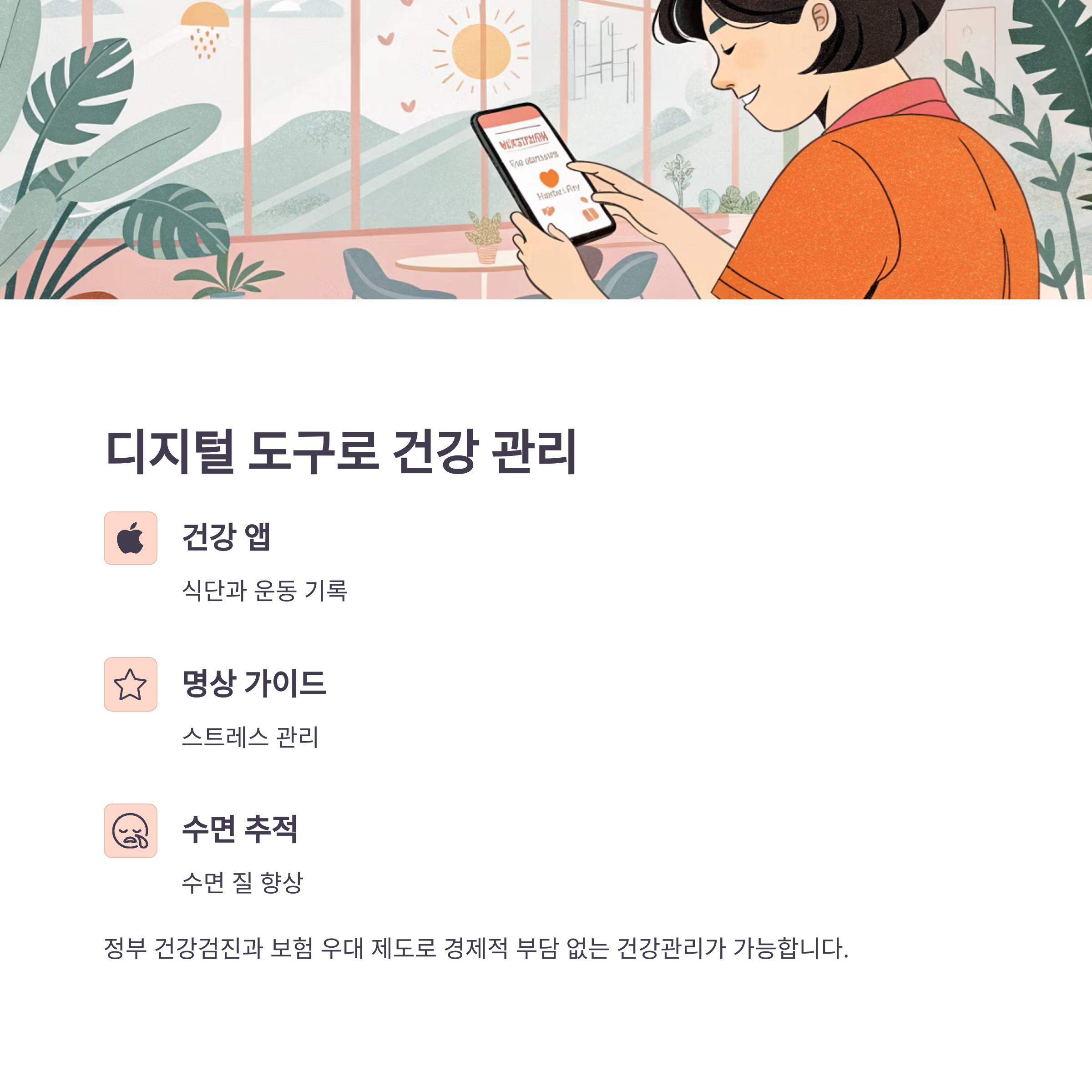 건강 앱, 명상 가이드, 수면 추적 앱 등 디지털 도구를 활용하면