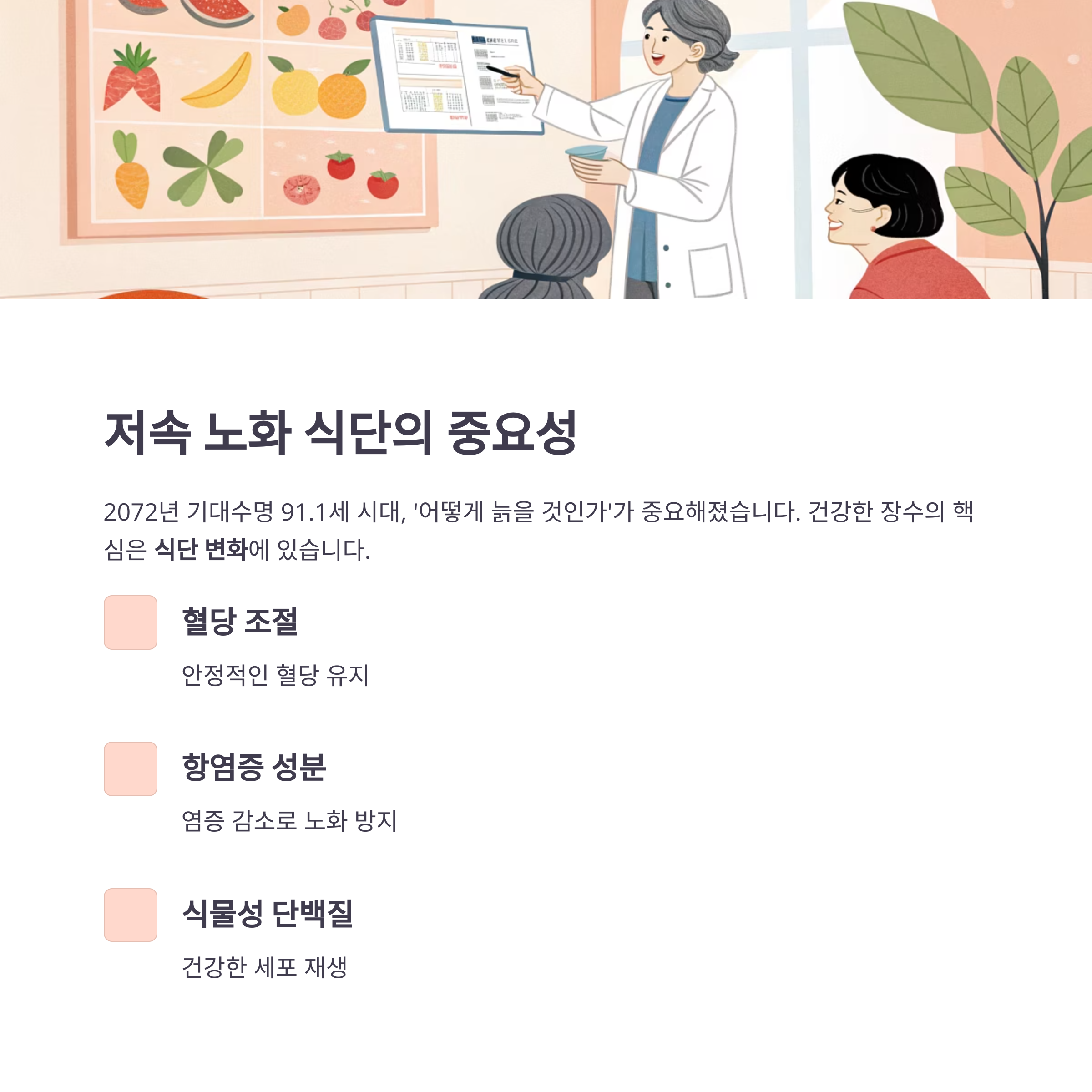 그 중심에는 혈당 조절, 항염증 성분, 그리고 식물성 단백질을 강조하는 저속 노화 식단이 있습니다.