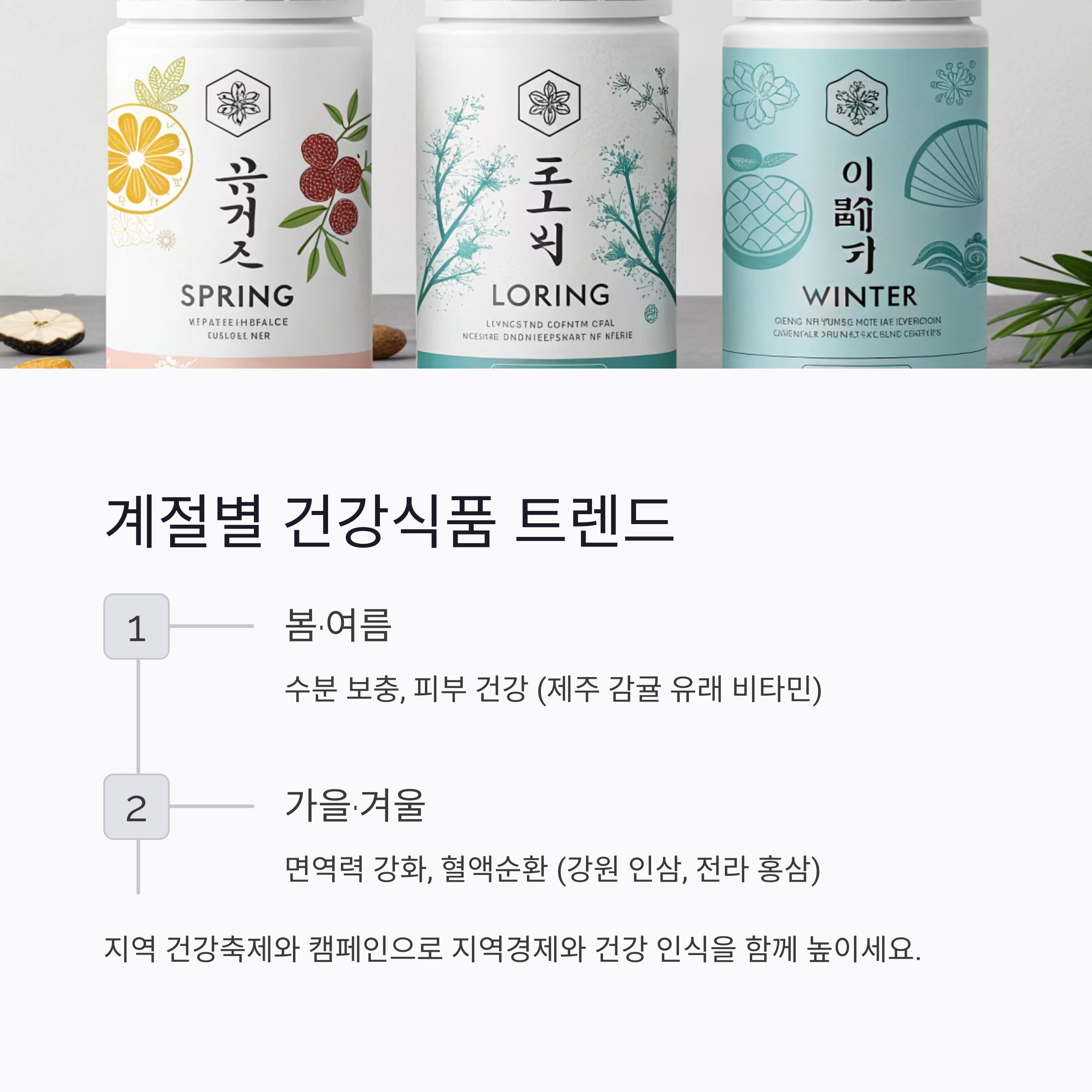 가을·겨울: 면역력 강화, 혈액순환 (예: 강원 인삼, 전라 홍삼)
