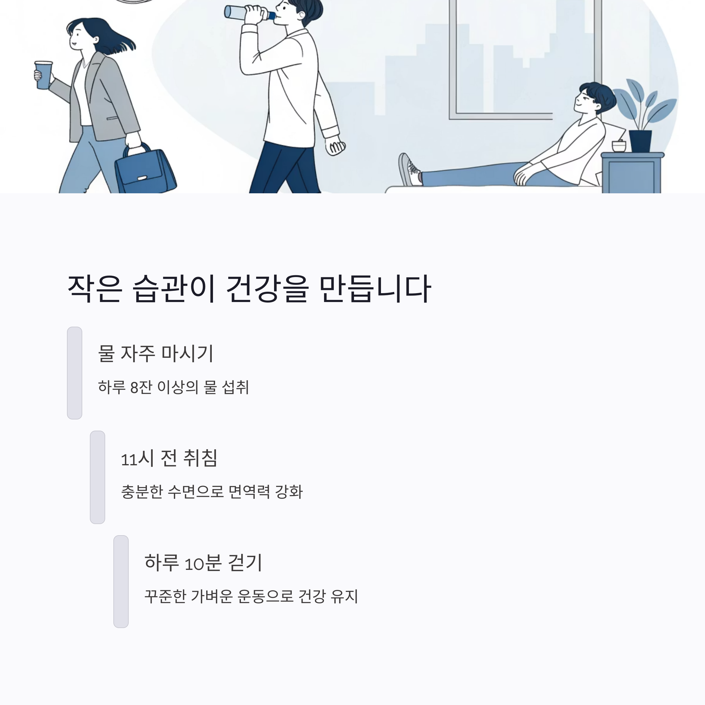 물을 자주 마시고, 밤 11시 전에 잠들며, 하루 10분씩 걷는 습관도