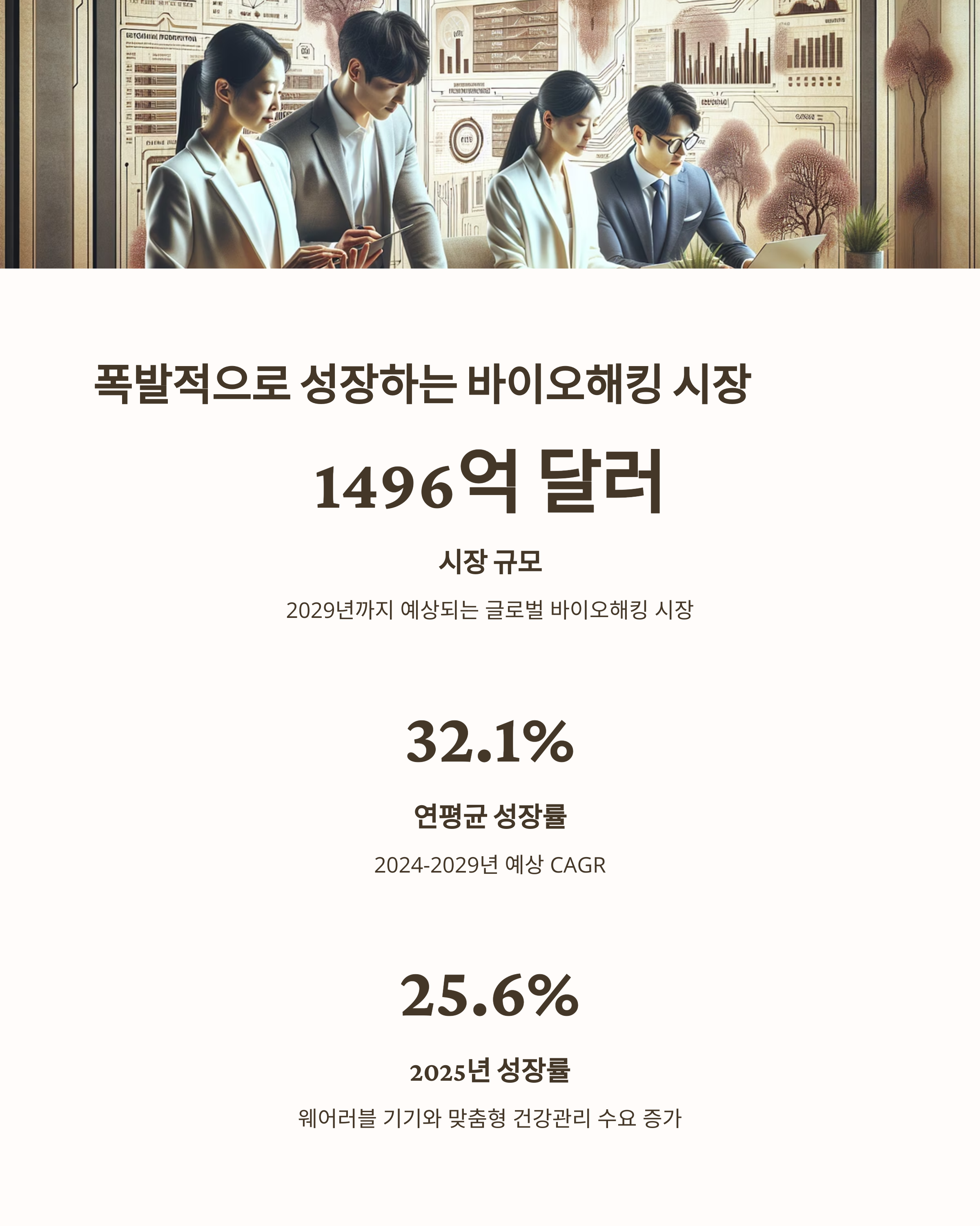 2024년부터 2029년까지 글로벌 바이오해킹 시장은 약 1496억 달러 규모로 성장할 것으로 예상되며,