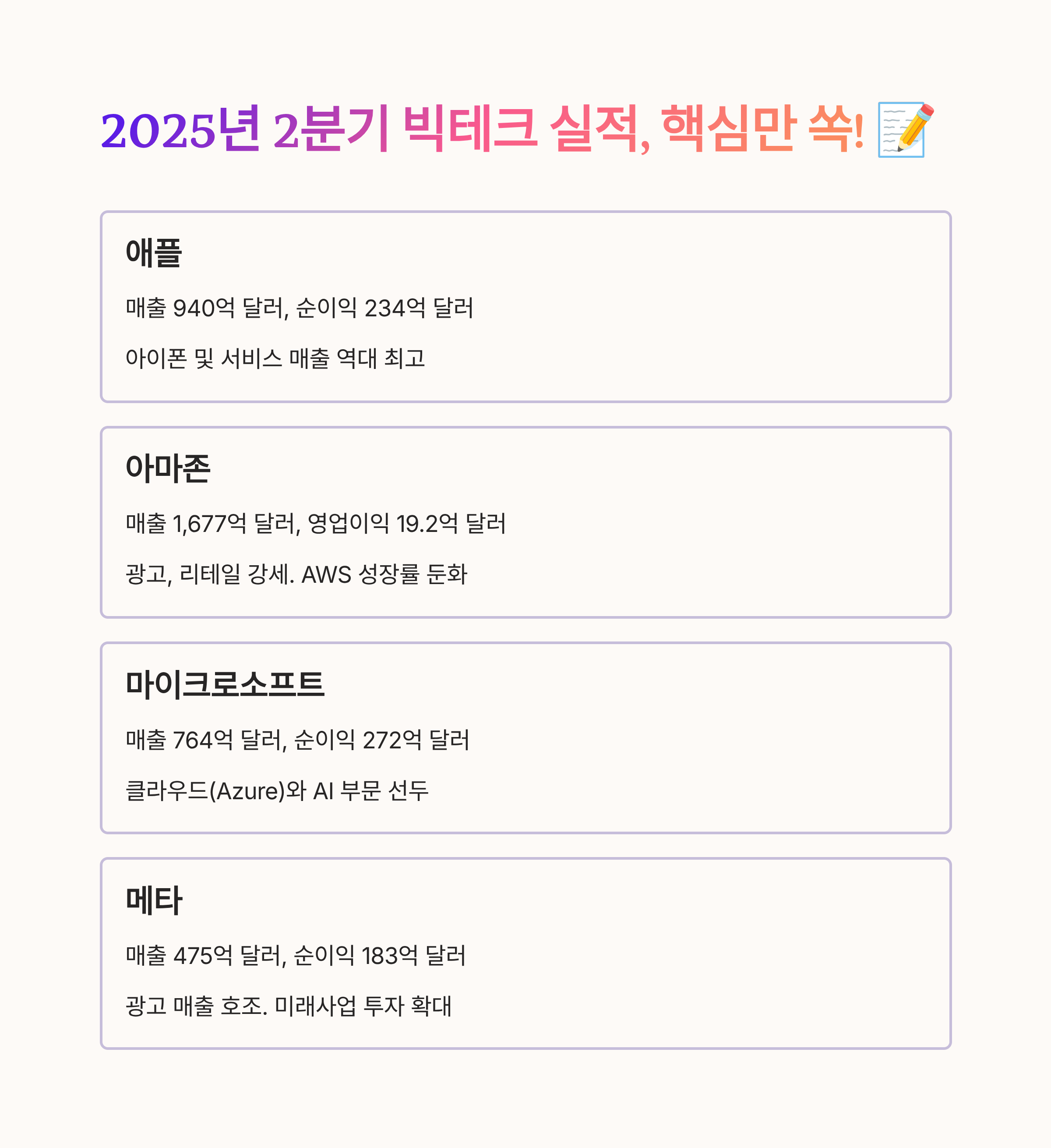 2025년 2분기 빅테크 실적, 핵심만 쏙! 📝