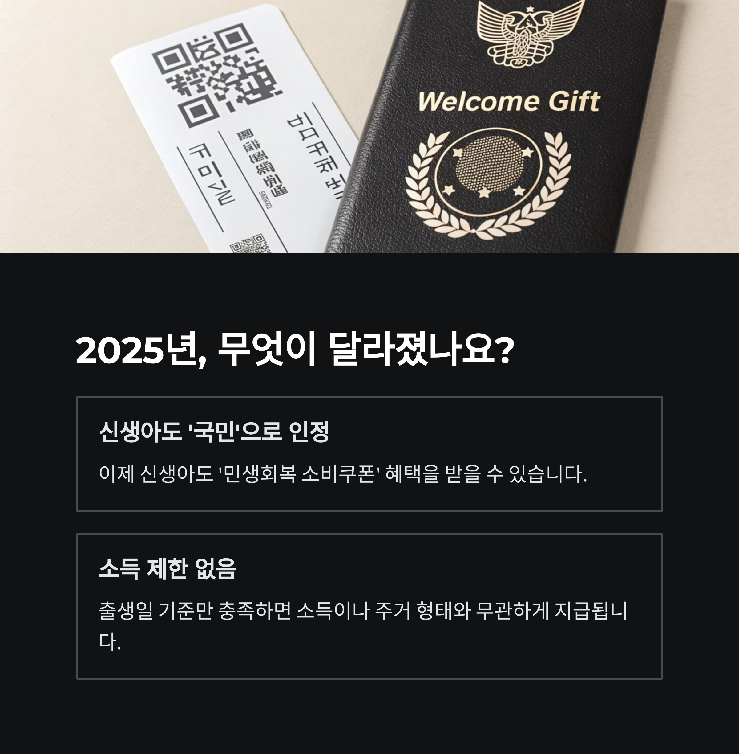 이번 2025년 정책은 ‘민생회복 소비쿠폰’이란 이름으로 대폭 확대됐습니다.