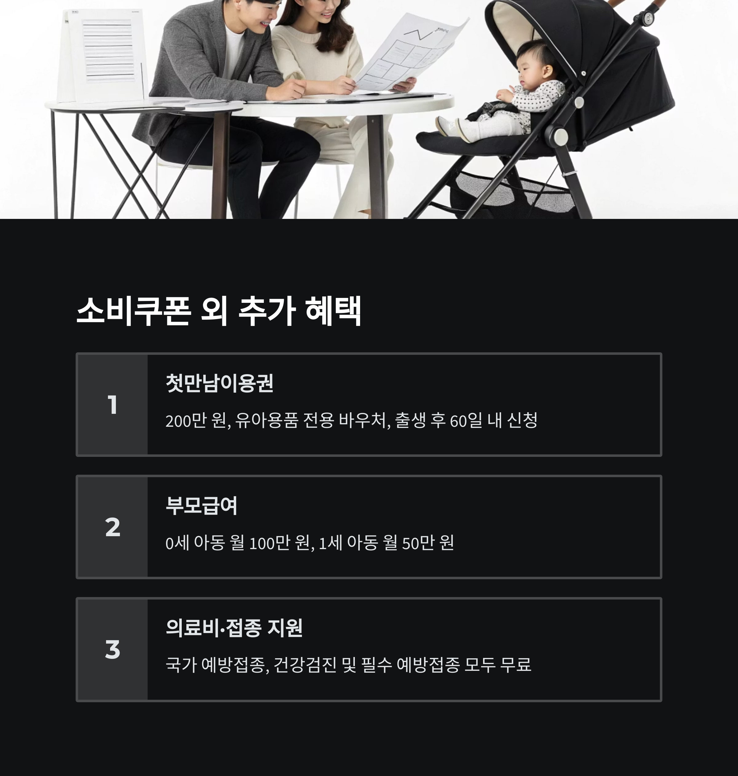 소비쿠폰 외에도 신생아를 위한 여러 정부지원이 동시에 이뤄지고 있습니다.