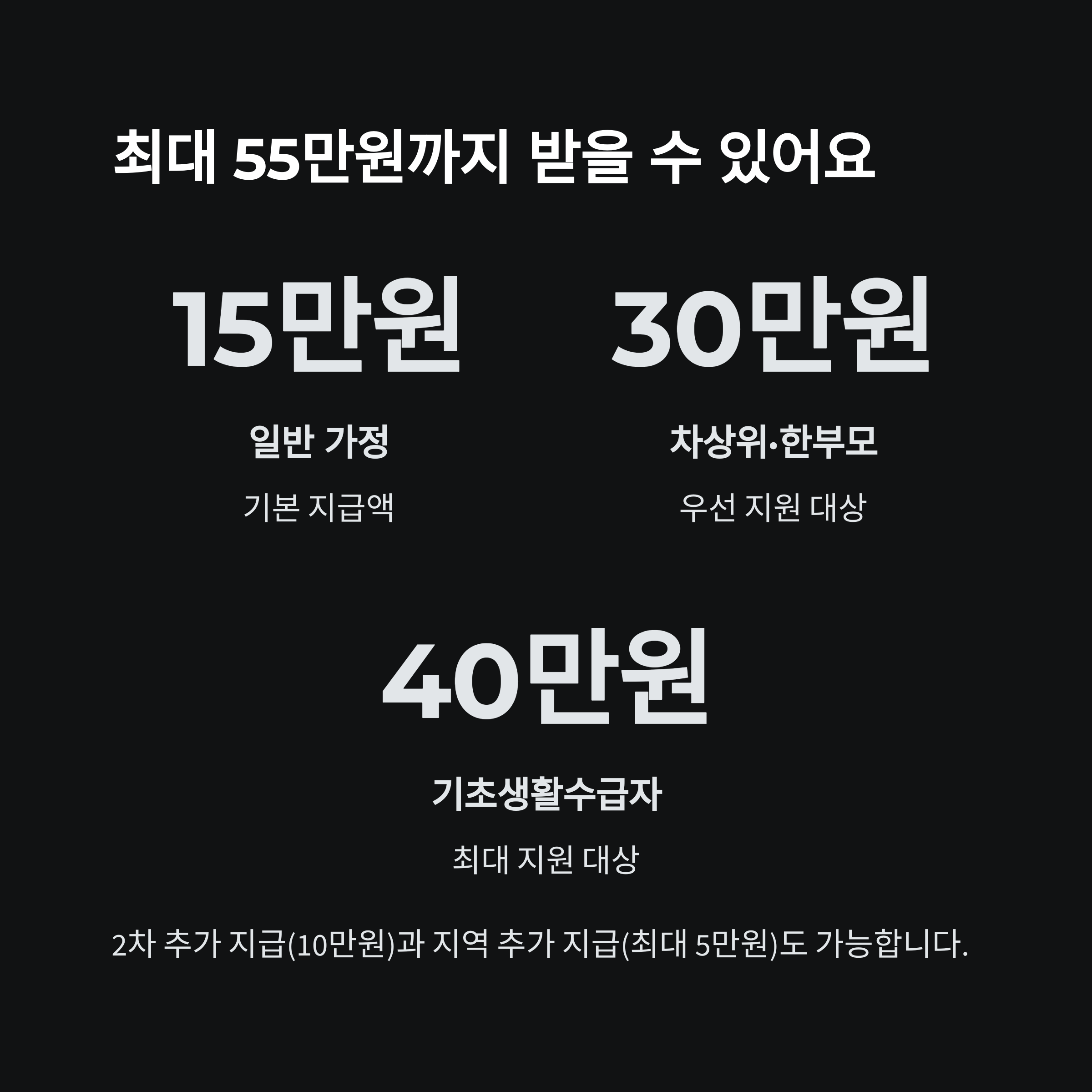 대상 기준과 지역 조건에 따라 신생아 한 명당 최대 55만 원까지 지급되며,