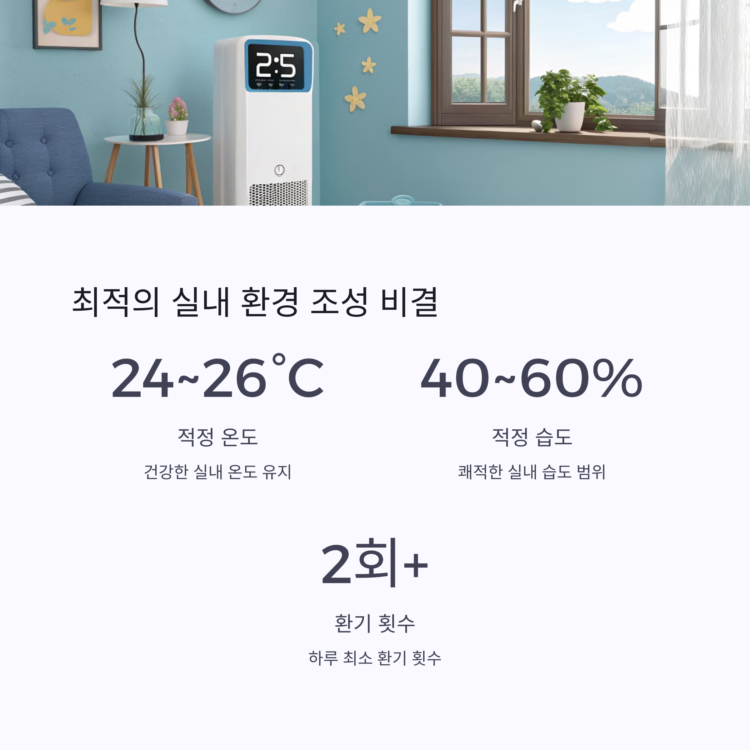 | 24~26도 | 40~60% | 하루 2회 이상 | 각 5분 이상 |