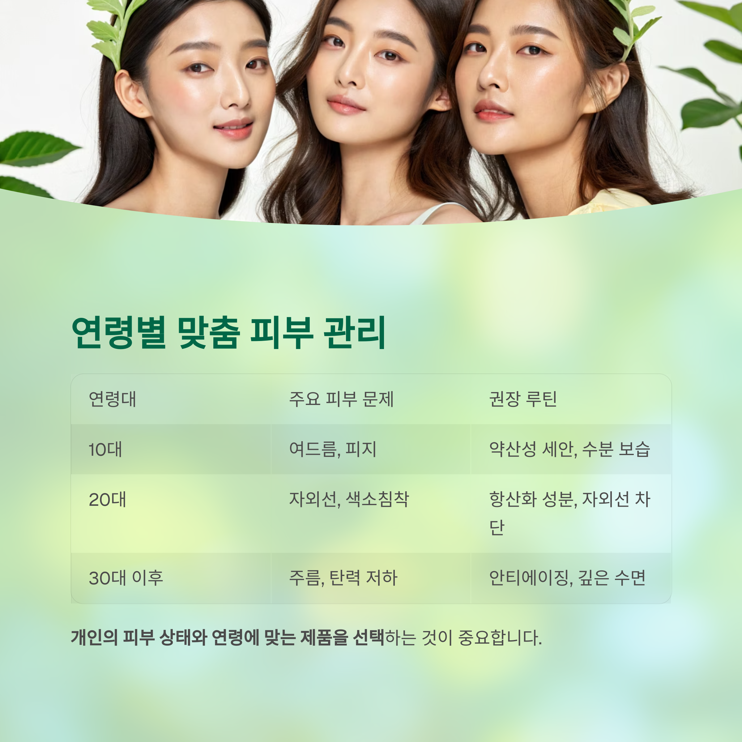 연령별 피부 특성을 반영한 루틴은 더욱 효과적입니다