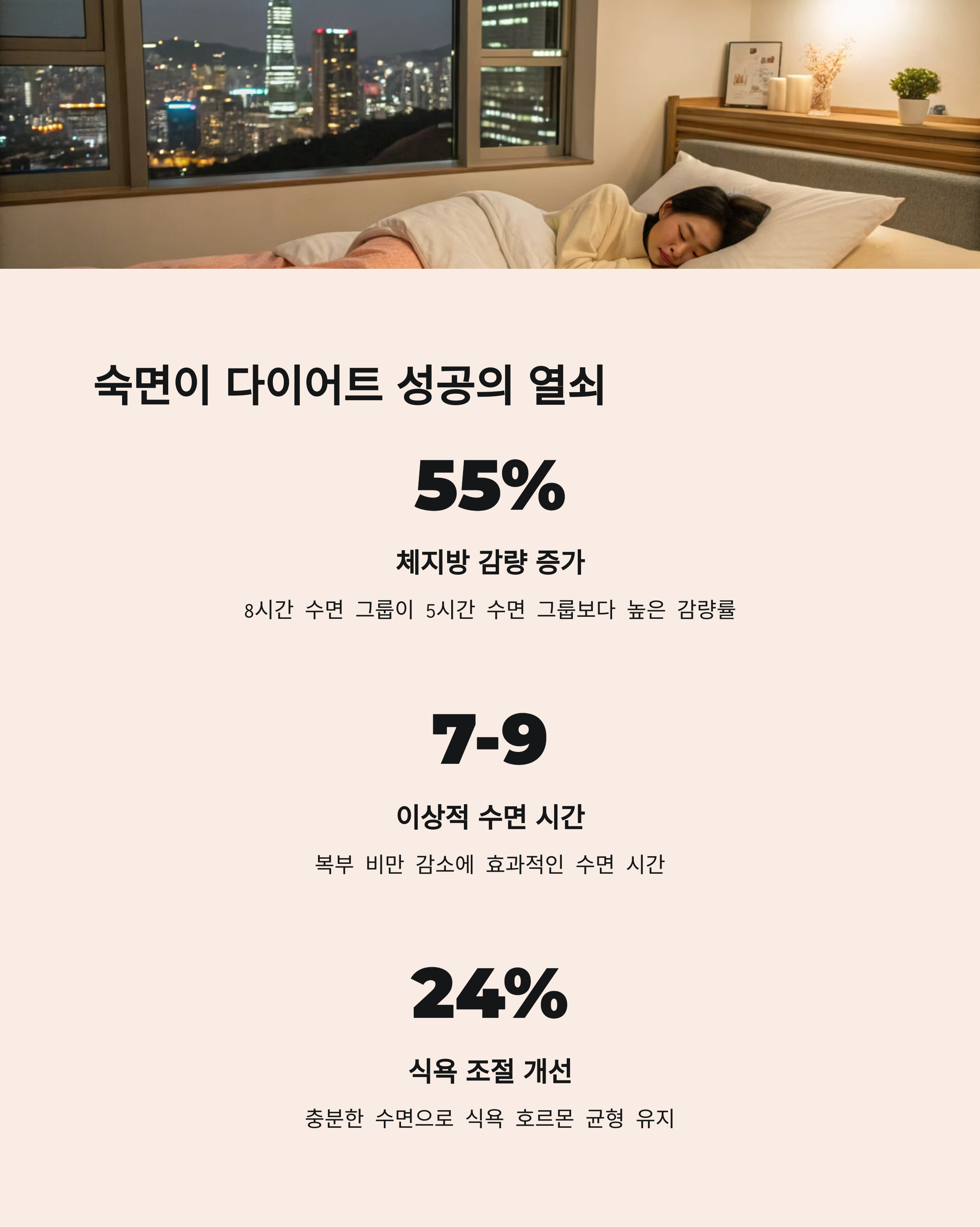 수면의 질은 다이어트 성공률에 직접적인 영향을 미칩니다