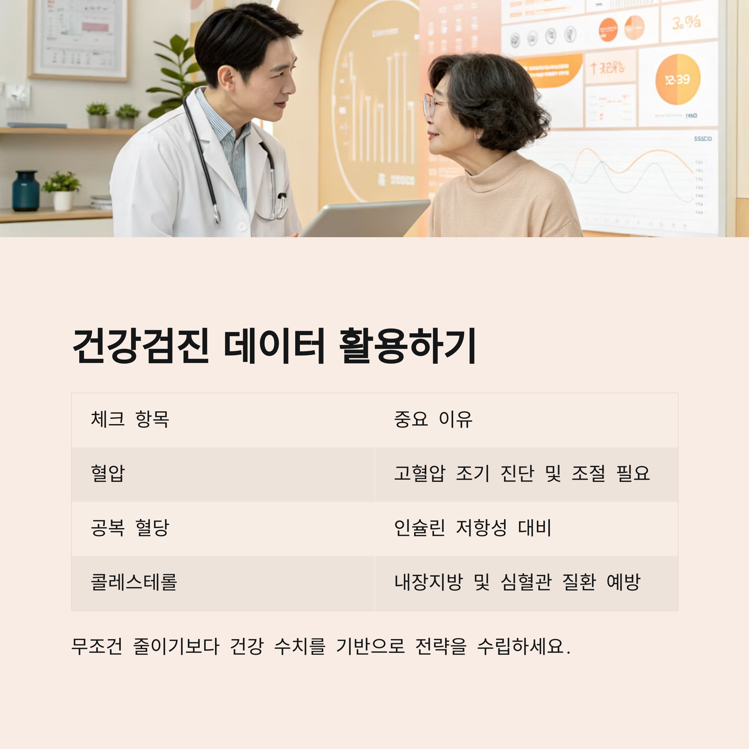 "무조건 줄이기"보다는 건강 수치를 기반으로 한 전략 수립이 핵심입니다
