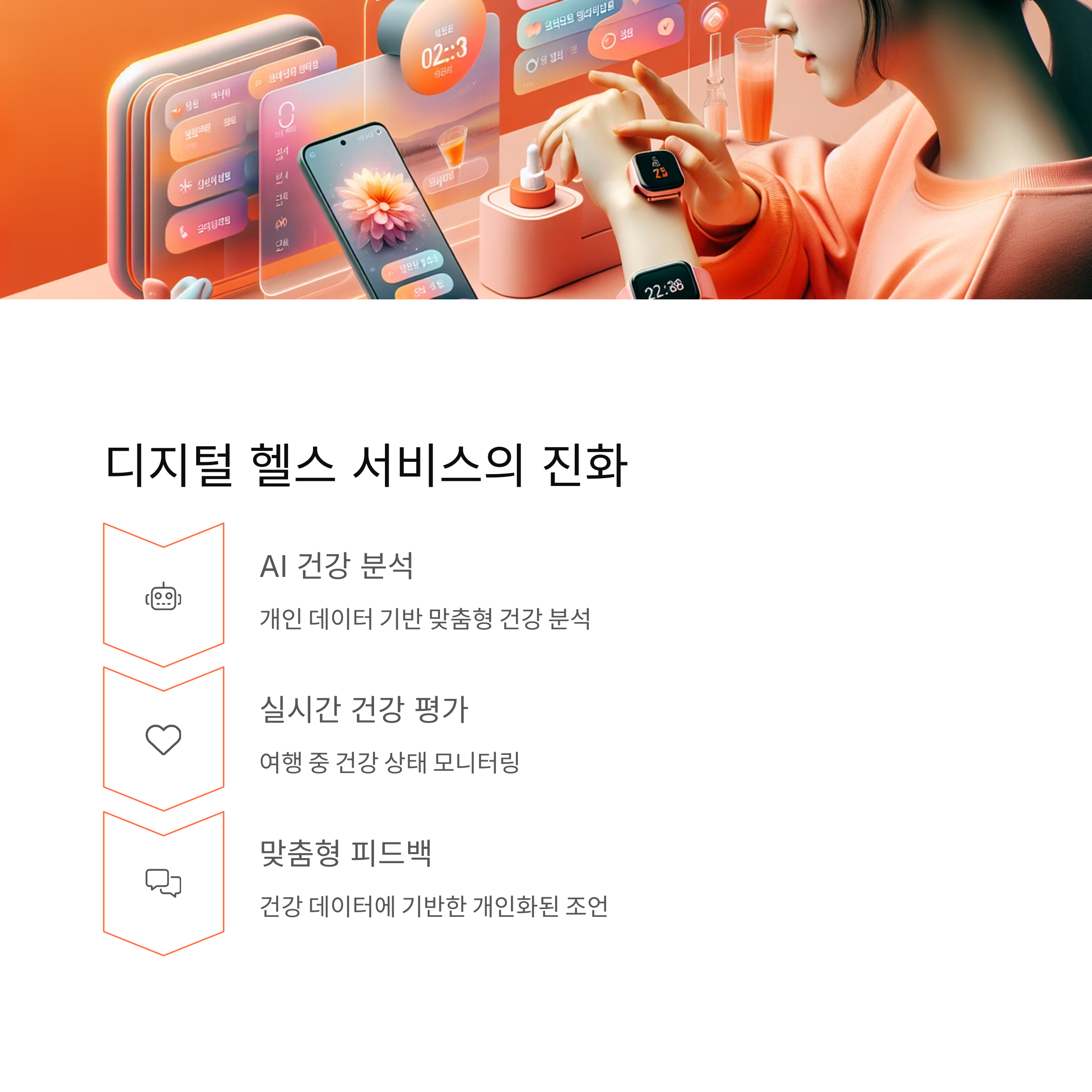 2025년에는 AI 기반 건강 분석 앱, 명상 및 호흡법 가이드, 운동 루틴 제공 앱 등 다양한 디지털 헬스 서비스가 여행자에게 도움을 줍니다.