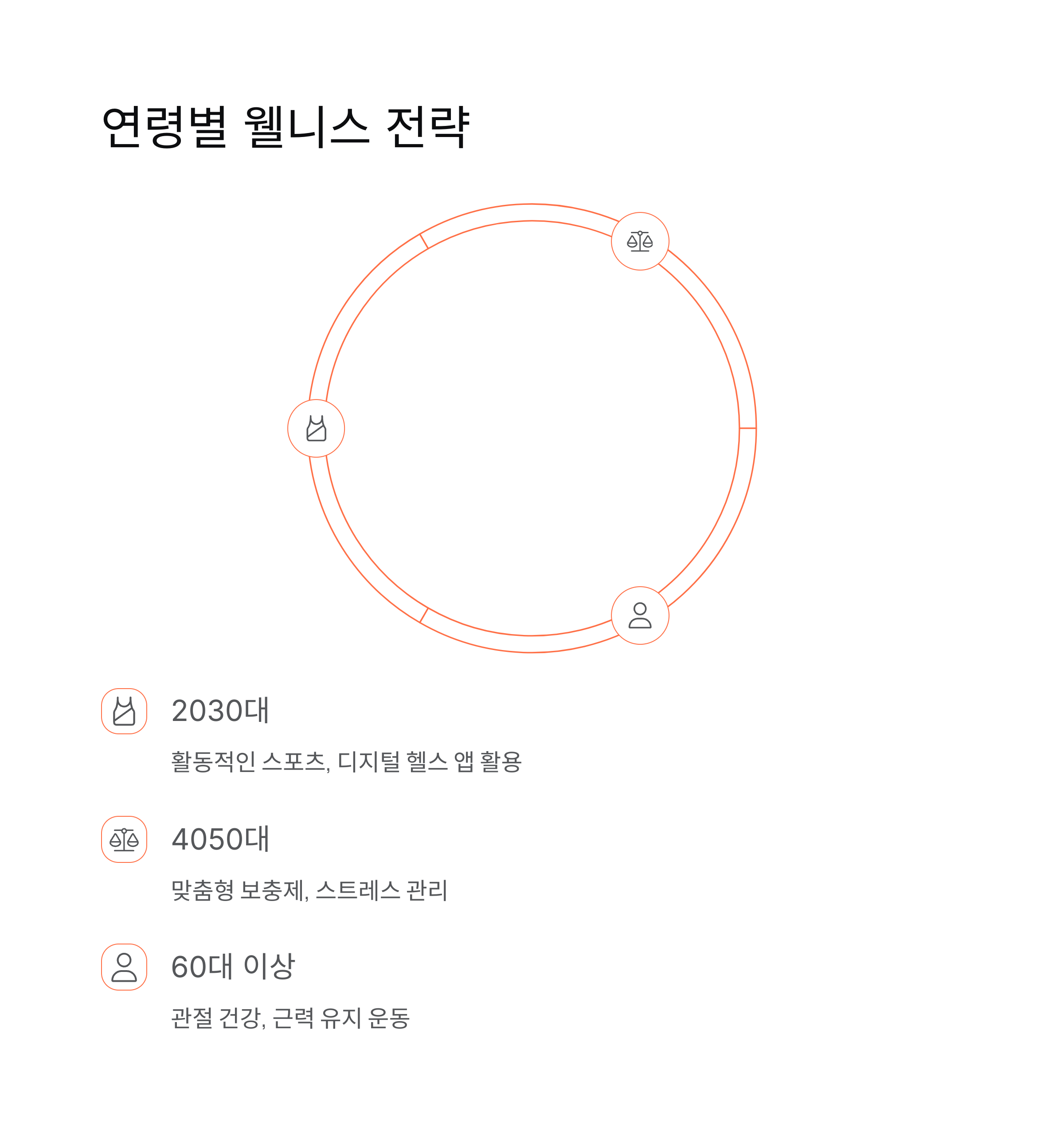 | 20~30대 | 활동적인 스포츠, 디지털 헬스 앱 활용 |