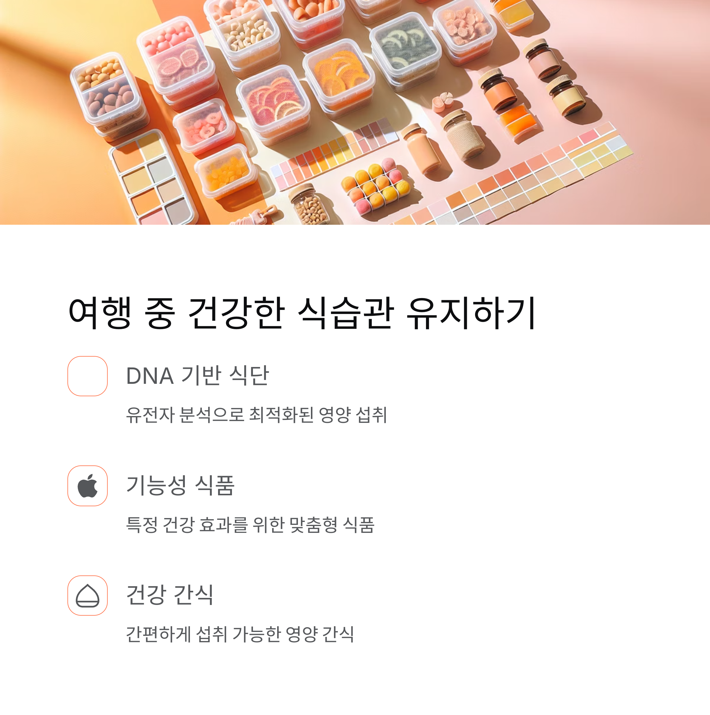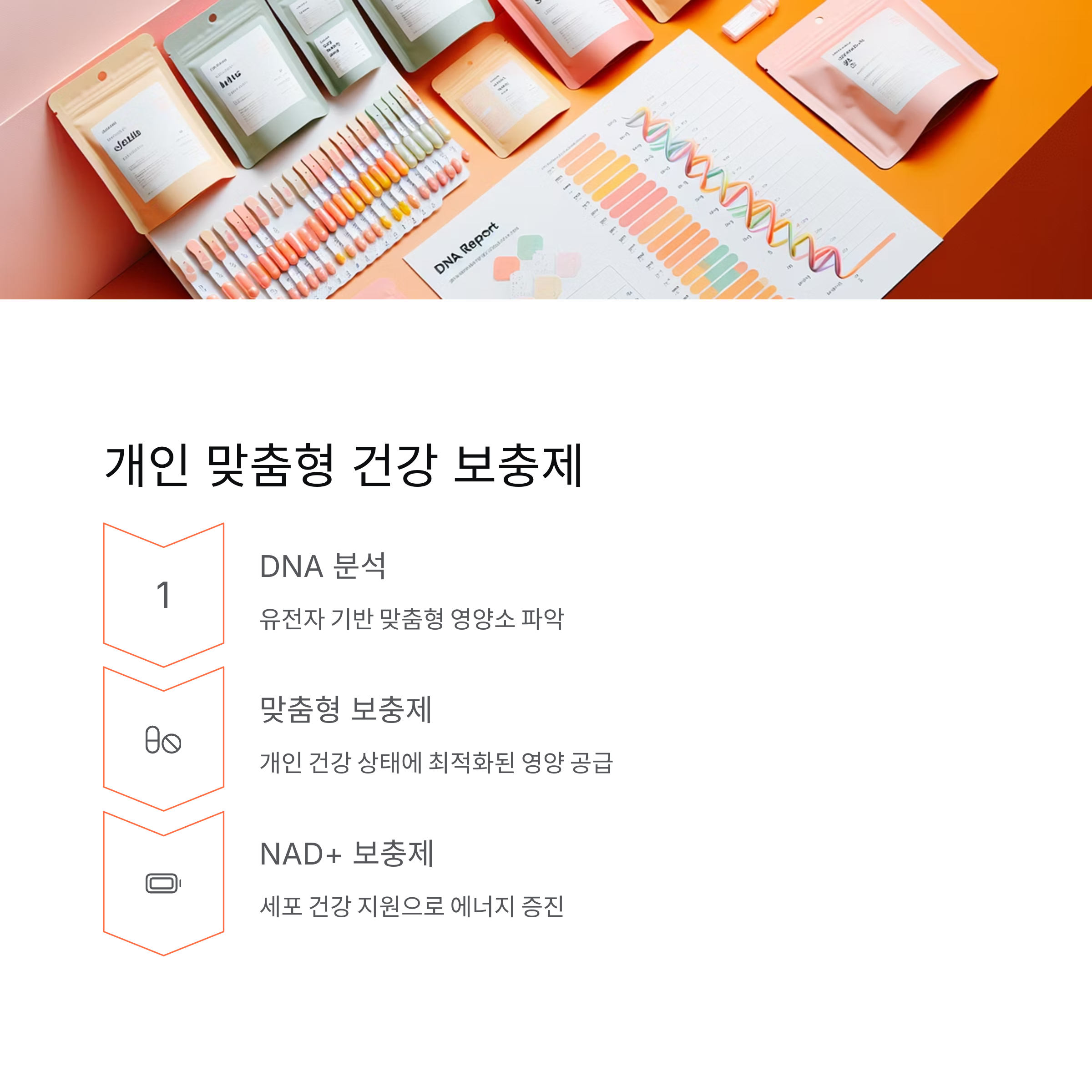 DNA 분석 기반 식단 추천 서비스나 건강 상태에 맞춘 비타민, 미네랄 보충제를 준비하면, 면역력과 체력을 유지할 수 있습니다.