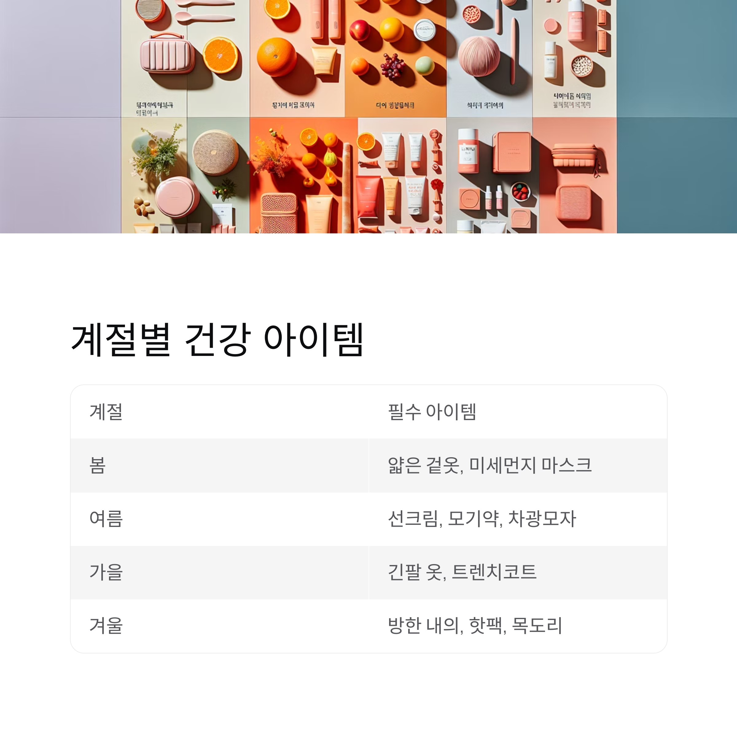 계절에 맞는 건강 용품을 준비하면 여행지에서도 편안하고 안전하게 건강을 유지할 수 있습니다.