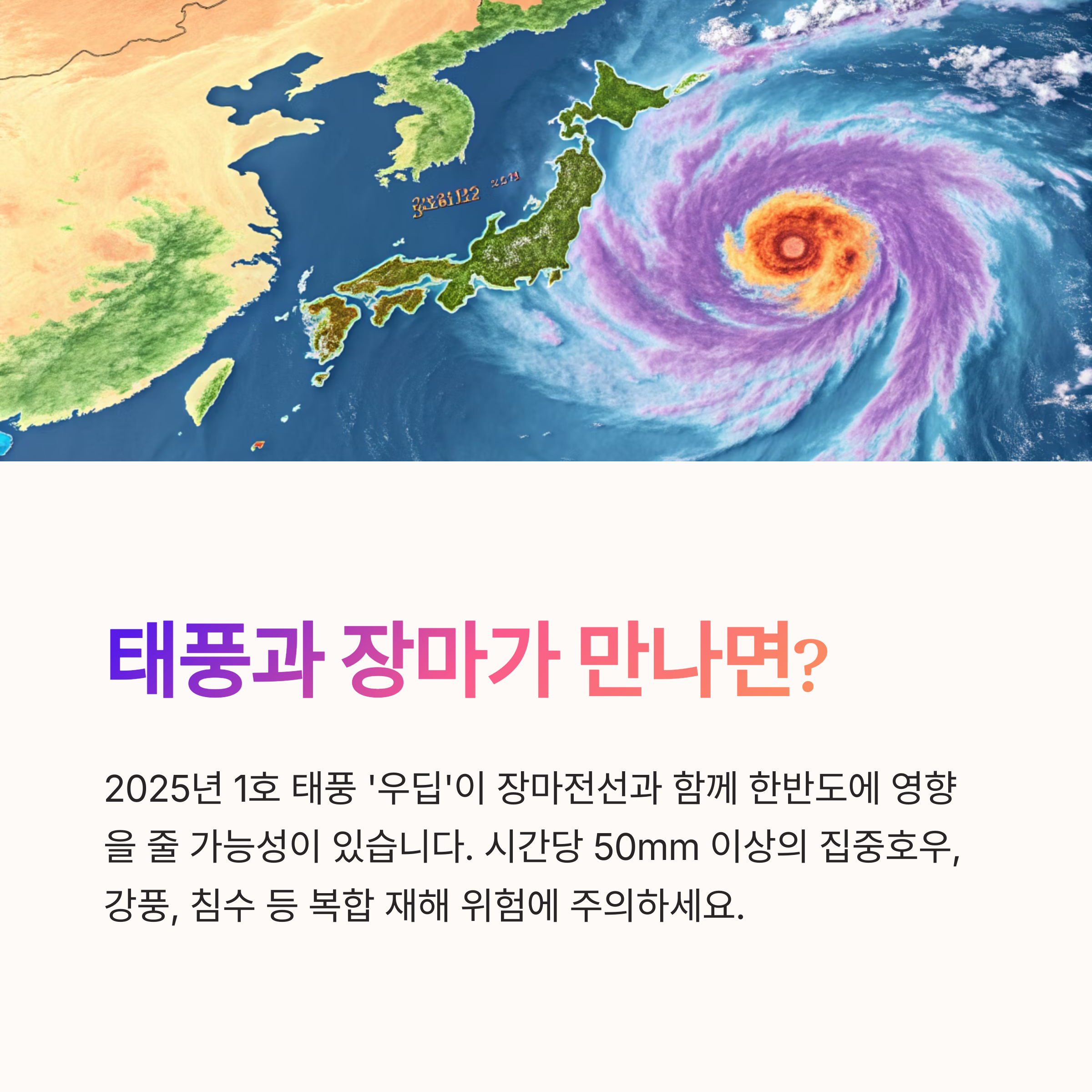 2025년에는 1호 태풍 ‘우딥’이 장마전선과 함께 한반도에 영향을 미칠 가능성이 제기되고 있습니다.