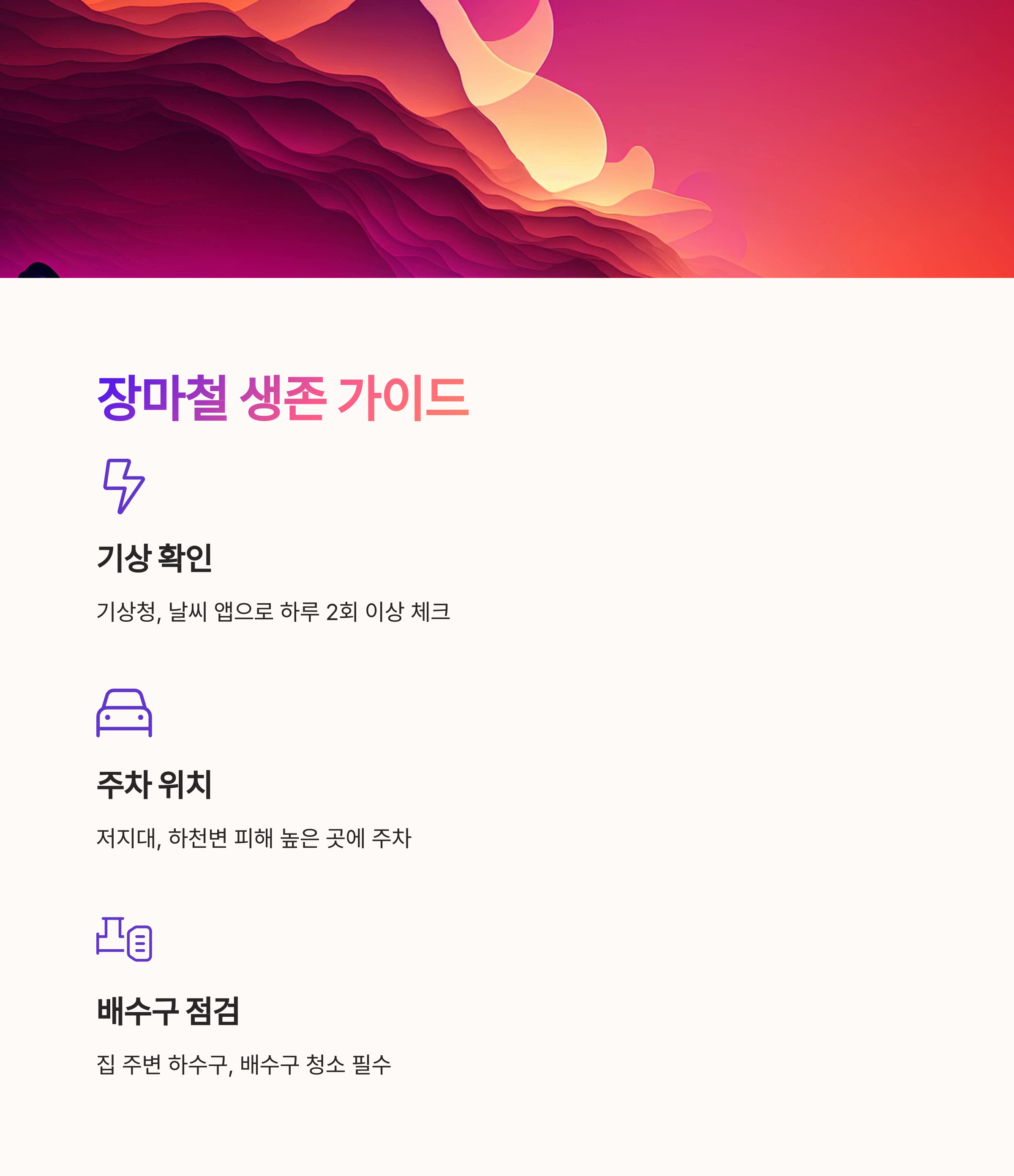 장마철에는 단순히 우산만 챙기는 것이 아니라, 실생활 속 다양한 위험을 예방하는 습관이 중요합니다.