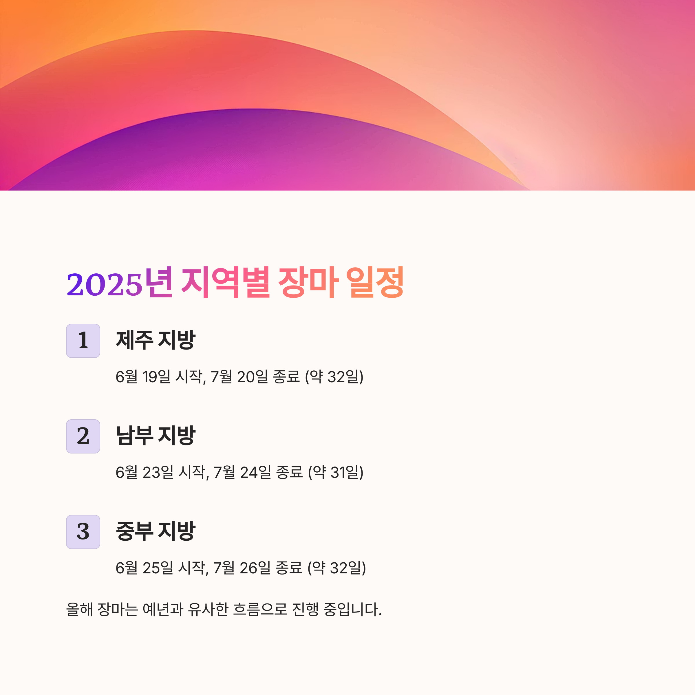 2025년 장마기간, 지역별 시작일과 종료일은?