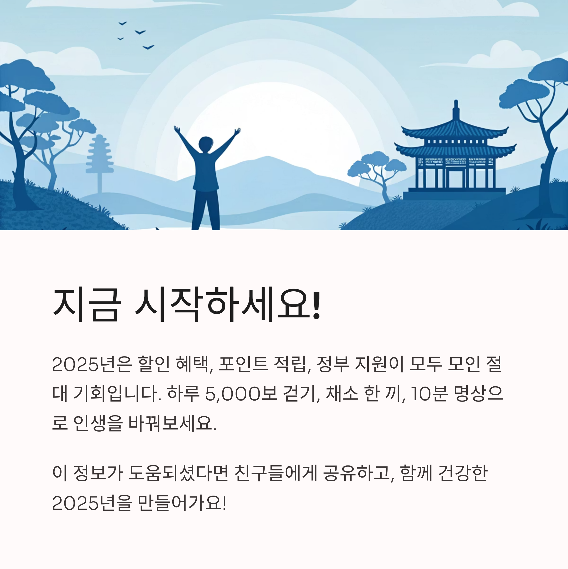 2025년은 경제적 부담 없이 건강을 챙길 수 있는 최적의 시기입니다. 정부 지원 제도, 건강 포인트 적립, 건강기능식품 할인, 헬스장 쿠폰, 스마트 헬스 앱까지 다양한 수단이 마련되어 있어 누구나 쉽게 건강관리 루틴을 시작할 수 있습니다. 본 글에서는 계절별 루틴, 연령별 전략, 할인 정보, 실천 방법, 건강기기 활용법까지 한 번에 정리해 드립니다.