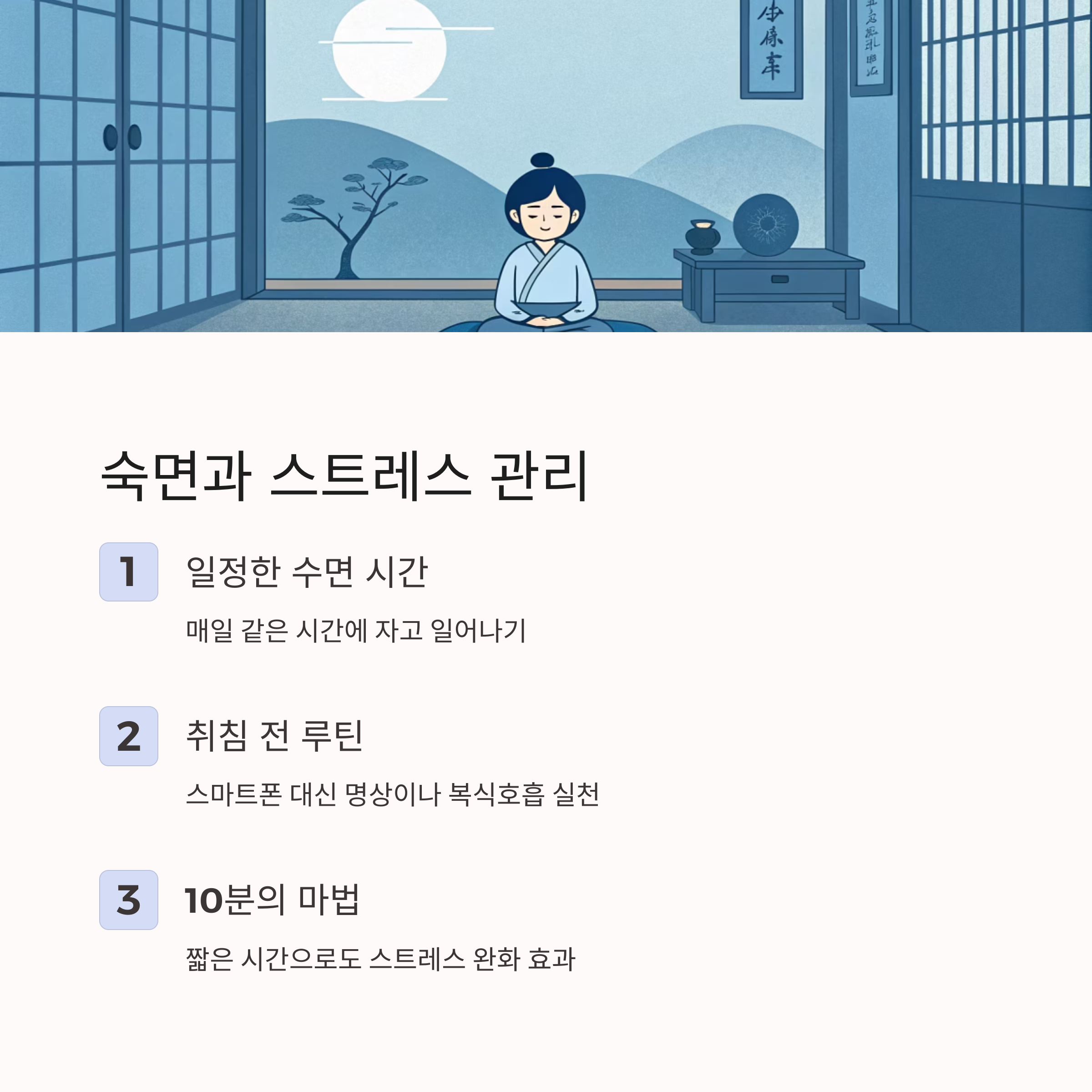 취침 전 스마트폰 대신 명상이나 복식호흡을 실천해보세요.