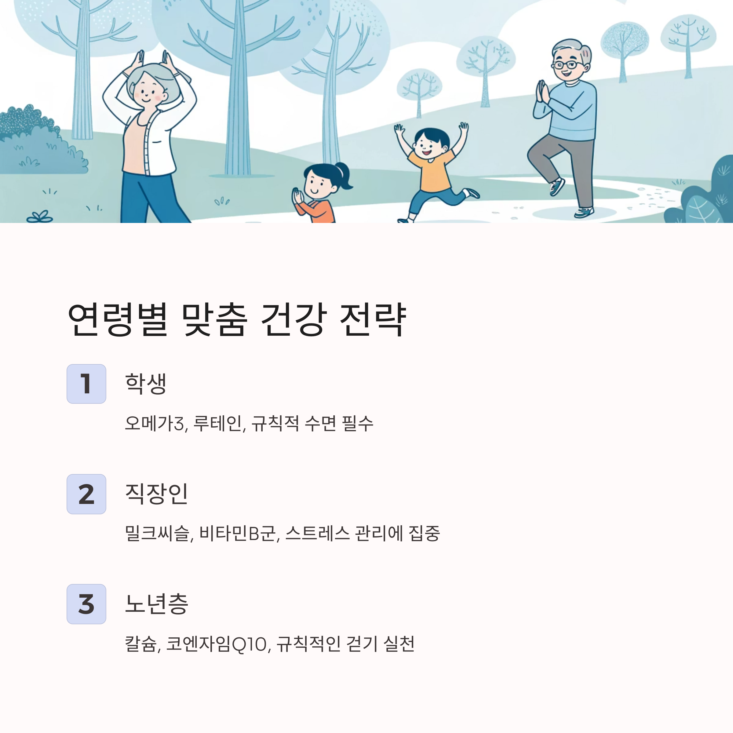 | 학생 | 오메가3, 루테인, 규칙적 수면 |