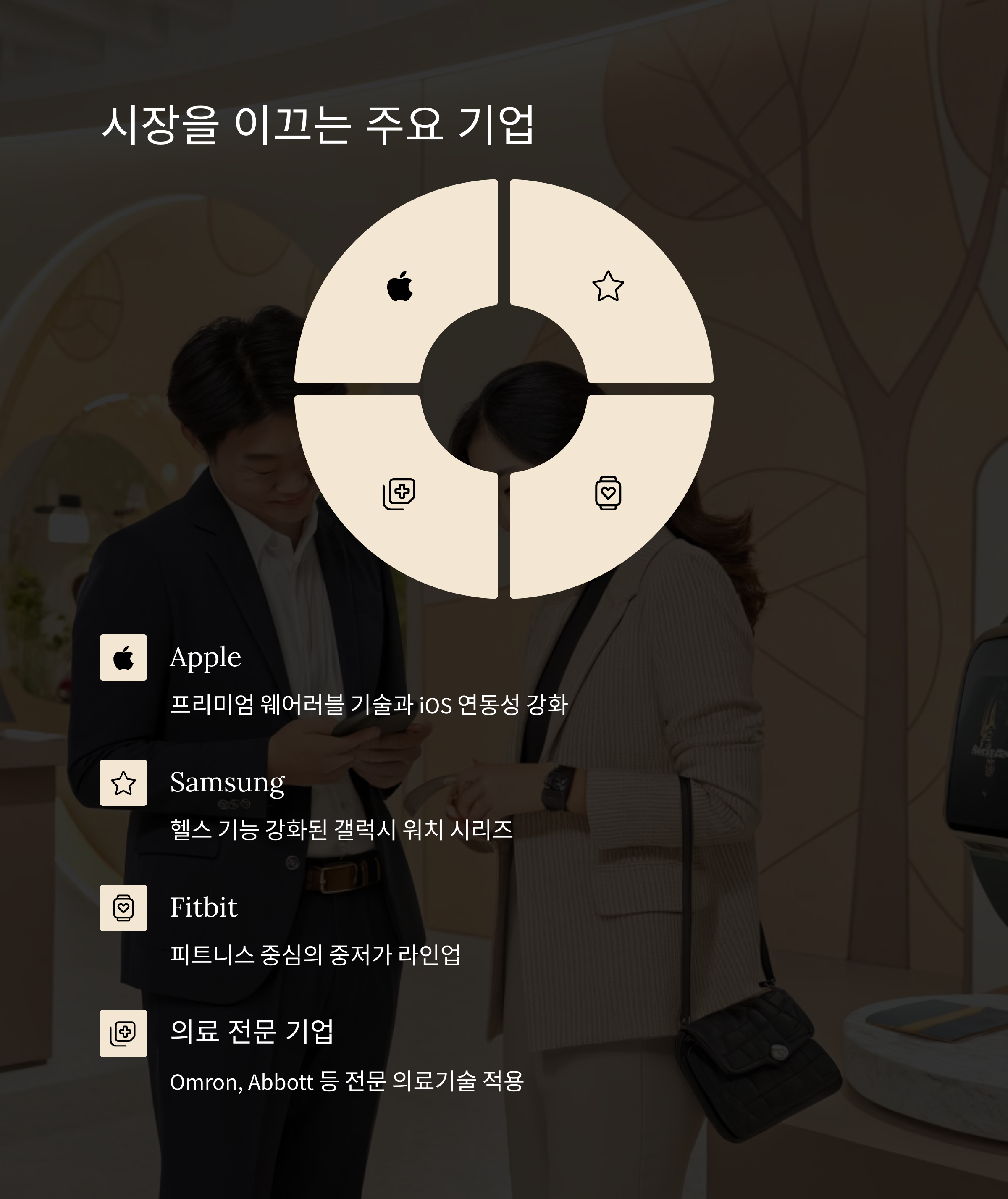 | Apple | 프리미엄 웨어러블 기술과 iOS 연동성 강화 |