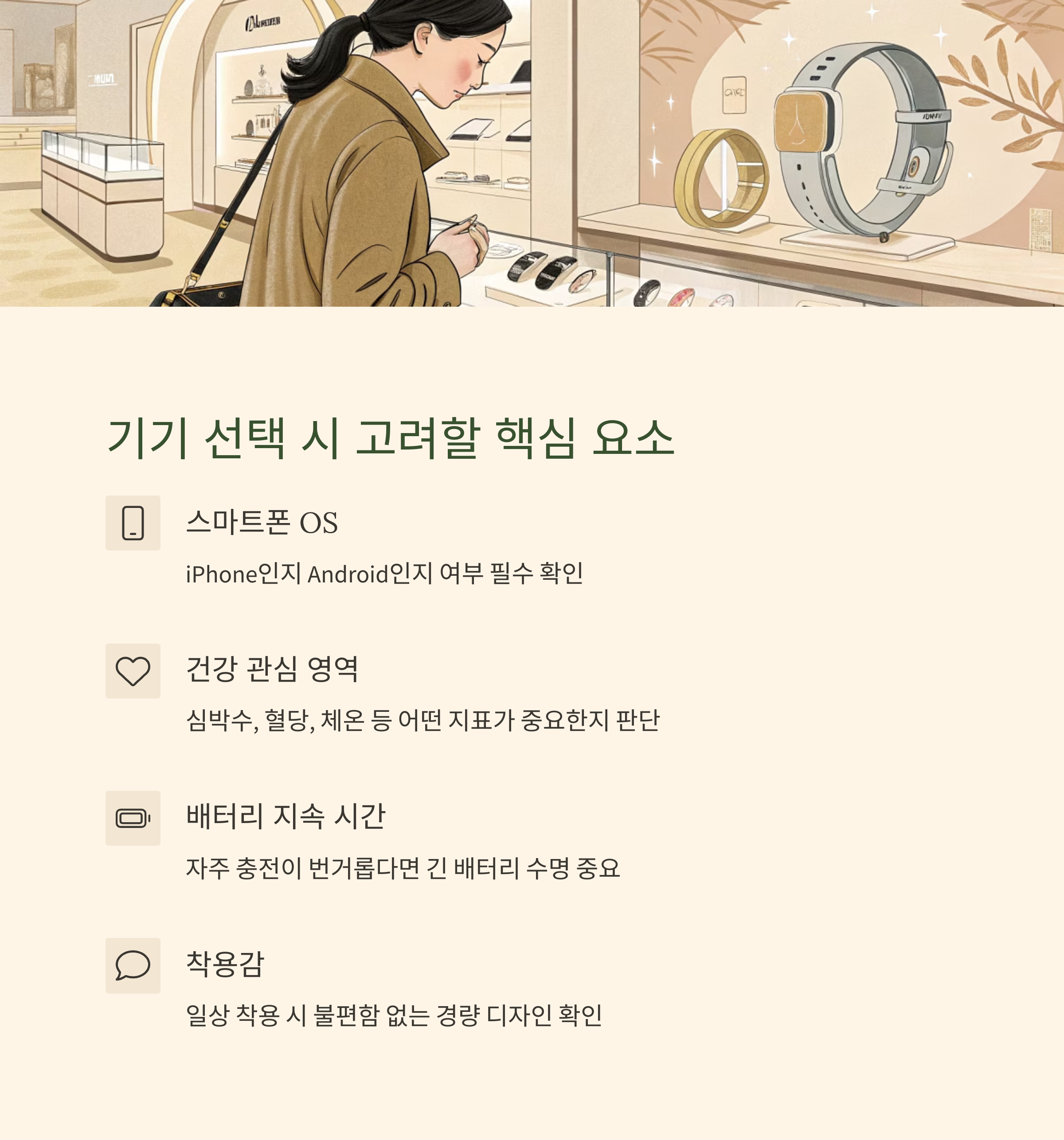 핵심: 기기 선택 시 스마트폰 OS 연동성과 건강 관리 필요 수준에 따라 선택하면 만족도가 높습니다.