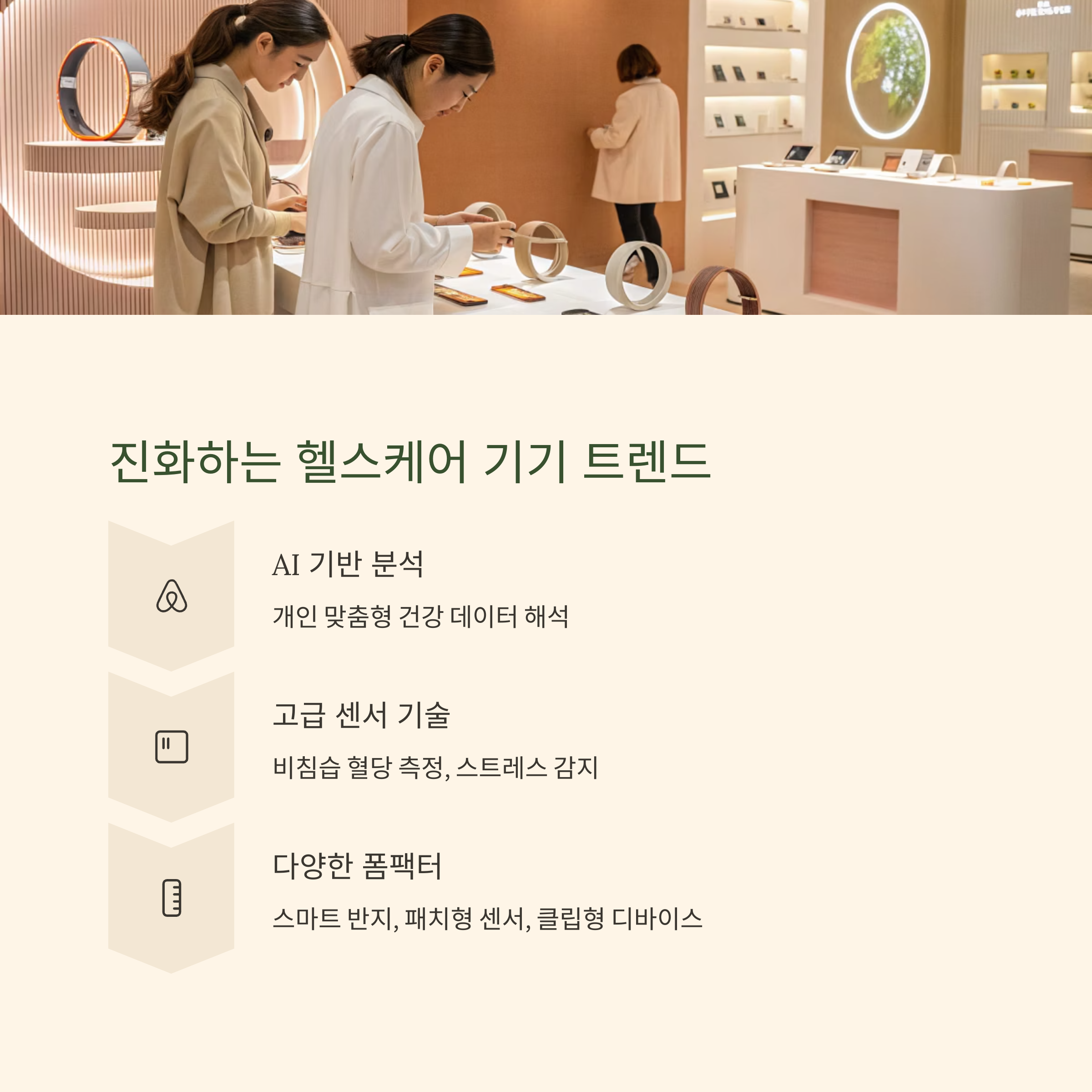 웨어러블 기기는 단순한 피트니스 트래커를 넘어 AI와 센서 기술을 기반으로 한 개인 맞춤형 의료기기로 진화하고 있습니다.