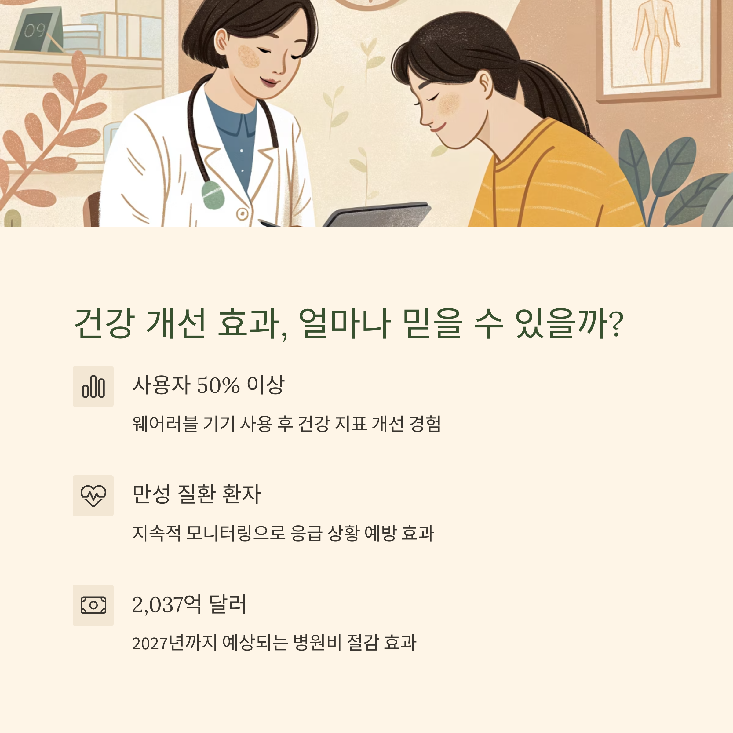 특히 만성 질환 환자의 경우, 지속적인 심박수·혈당 모니터링으로
