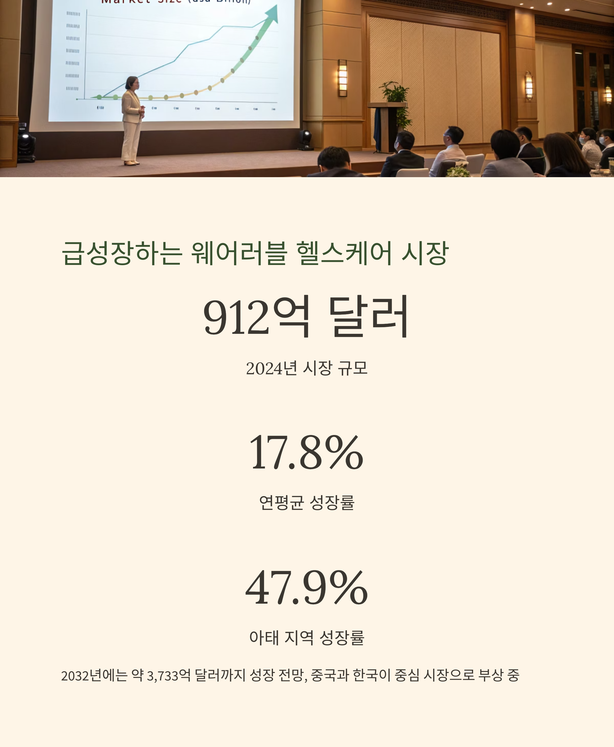 2024년 기준 전 세계 웨어러블 의료 기기 시장은 912억 달러 규모로 평가되었으며,