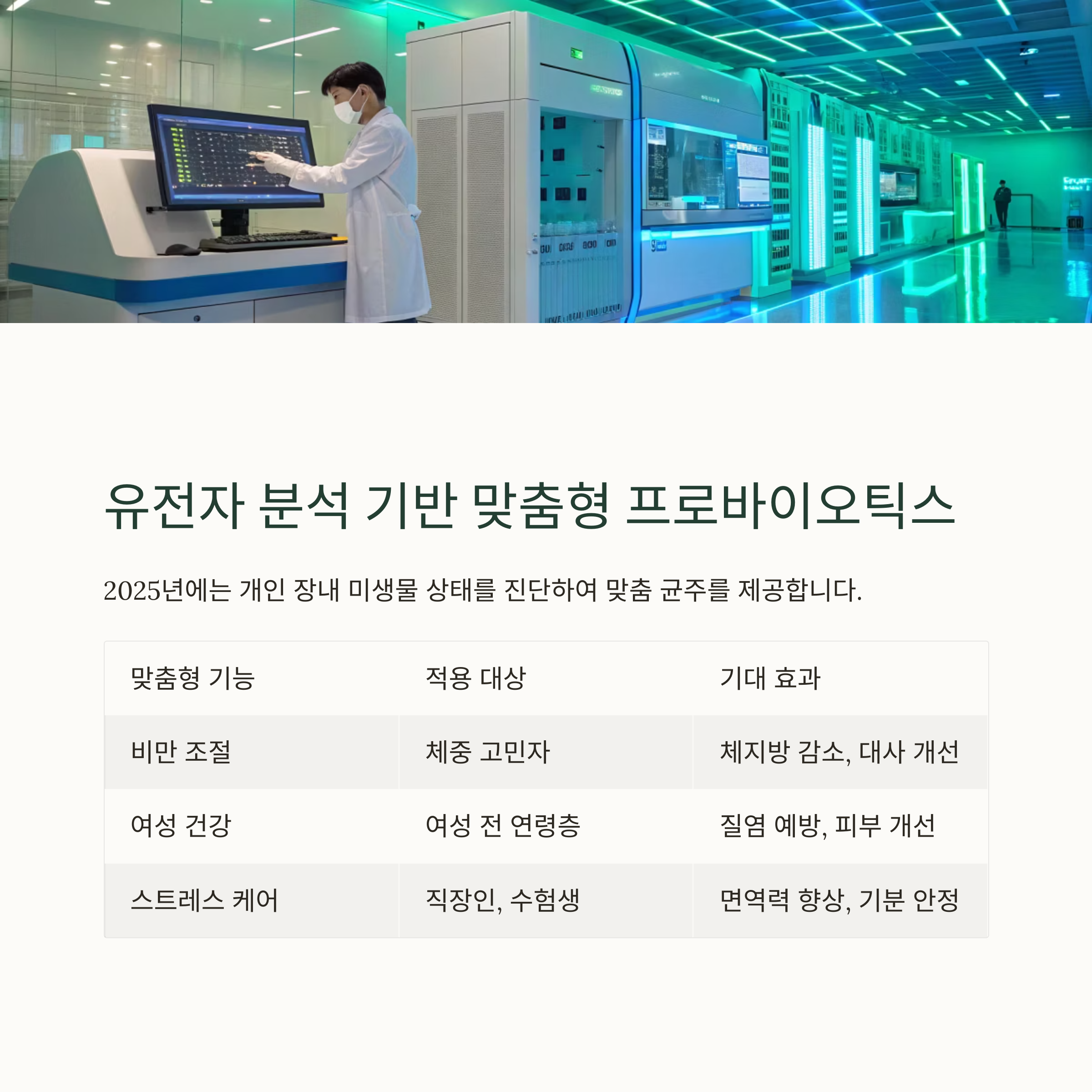 개인의 장내 미생물 상태를 진단하고 필요한 균주를 맞춤 제공하는 제품이 확산 중입니다.