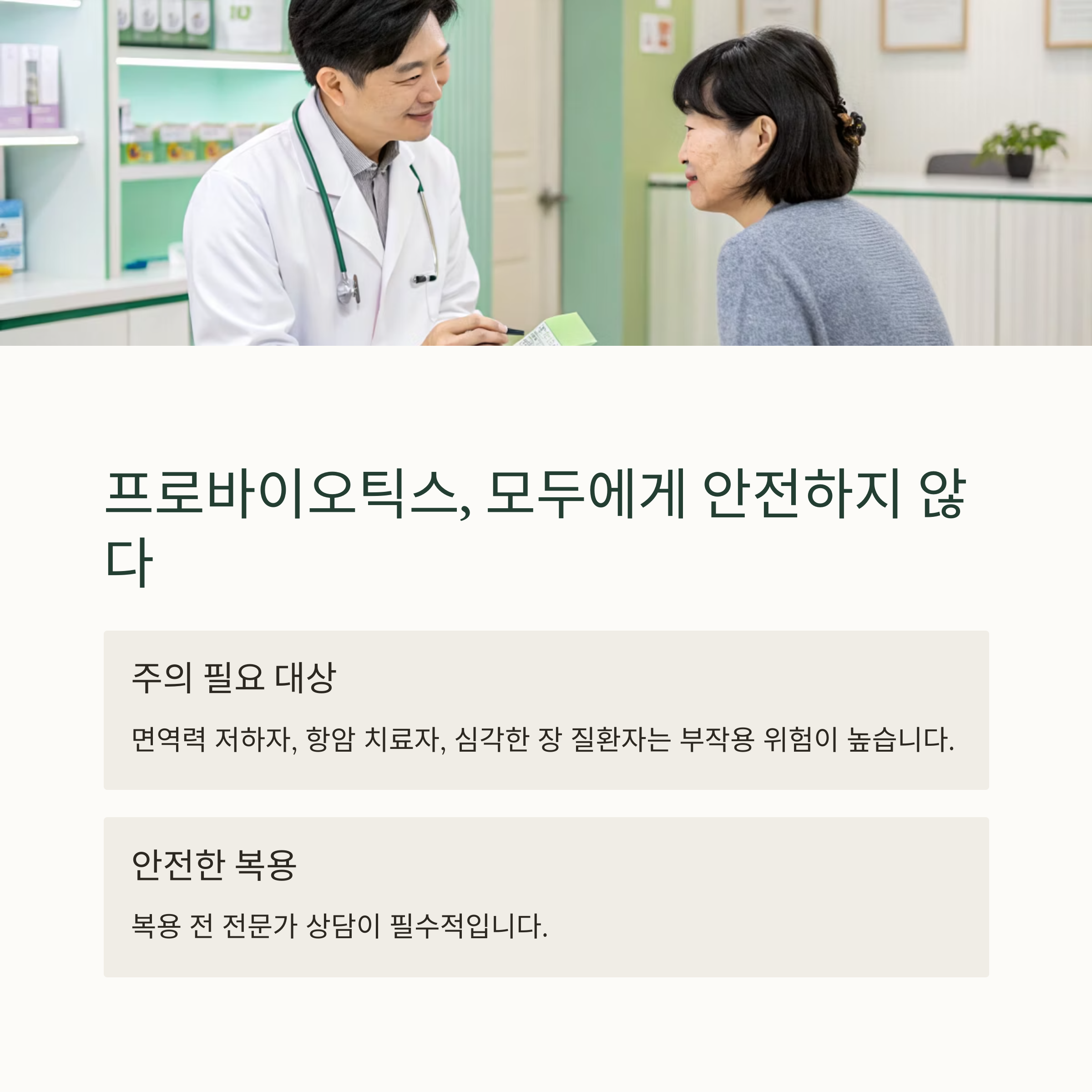 프로바이오틱스는 전 연령층에 도움을 줄 수 있지만, 모든 사람에게 무조건 안전하지는 않습니다.