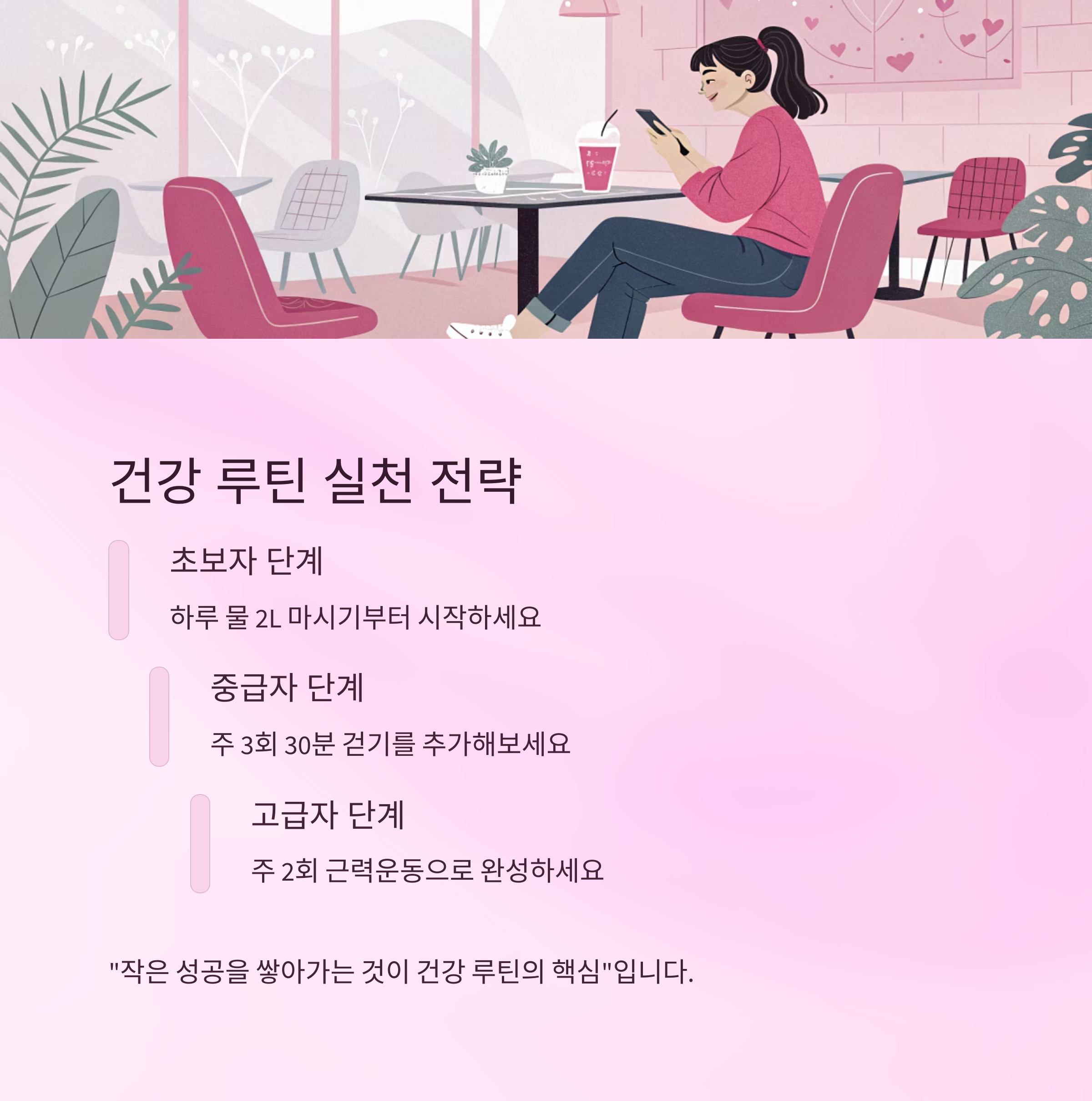 "작은 성공을 쌓아가는 것이 건강 루틴의 핵심"입니다.