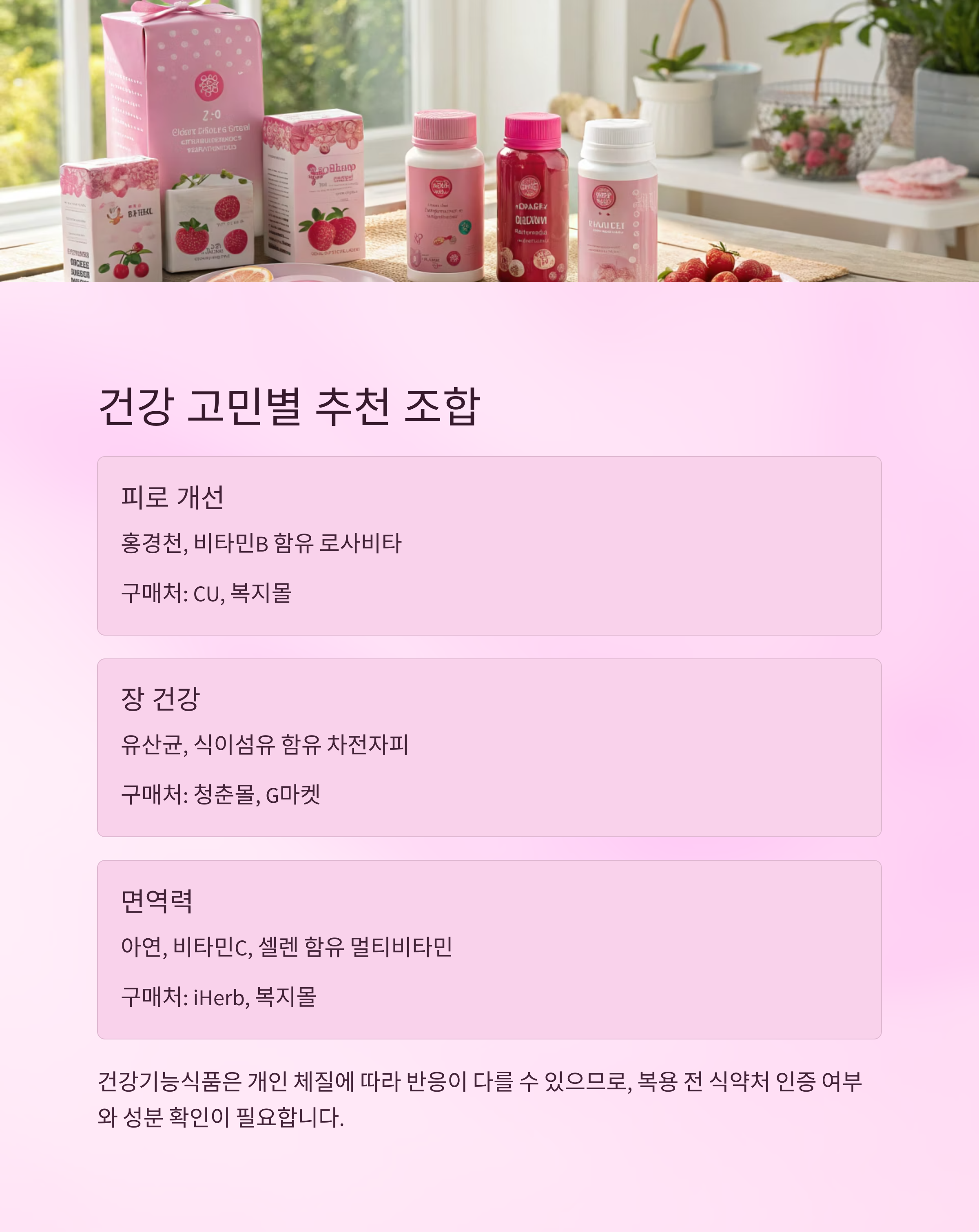 건강 고민 추천 성분 추천 제품 구매 채널