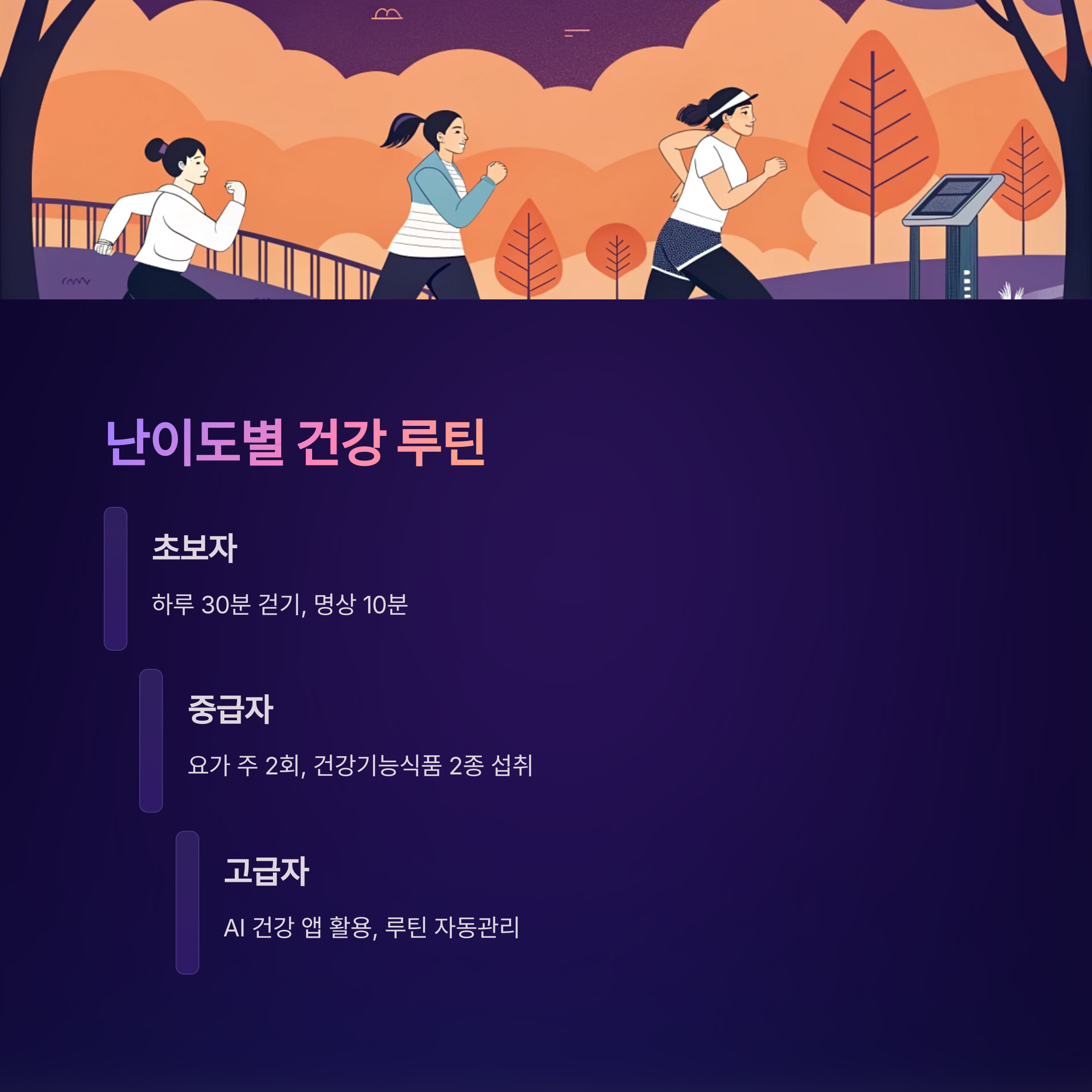 | 고급자 | AI 건강 앱 활용, 루틴 자동관리 |