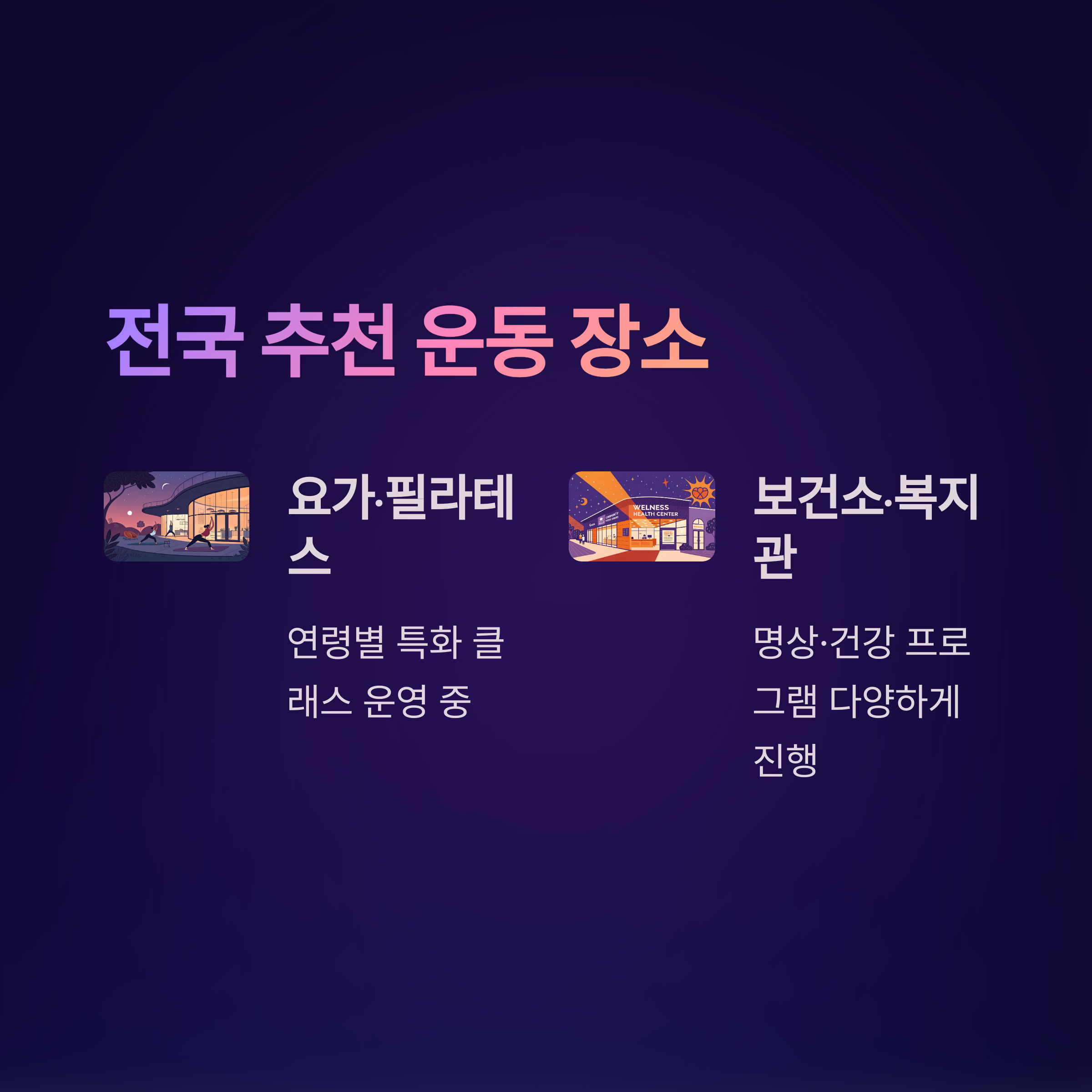 전국 주요 헬스장, 요가·필라테스 스튜디오에서는