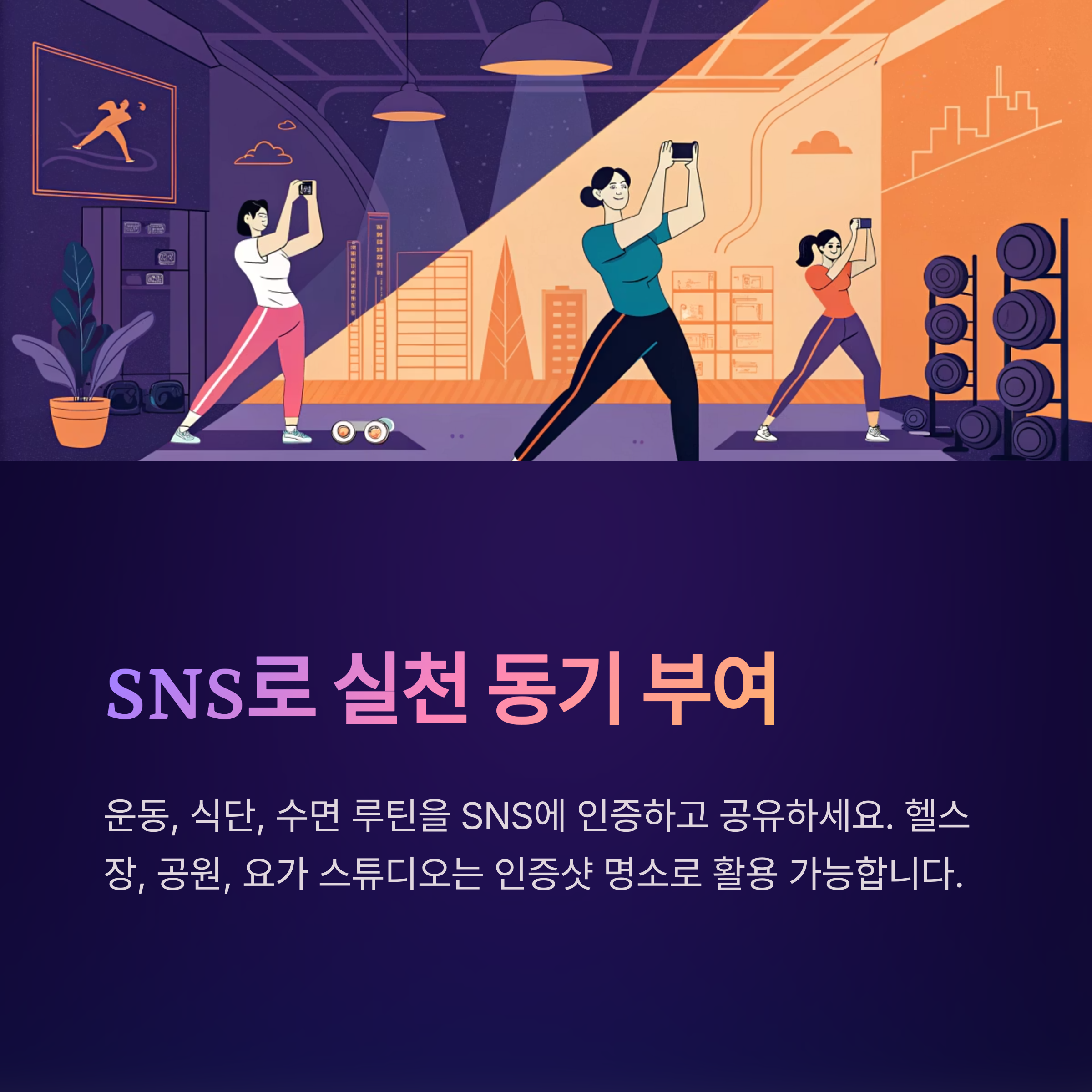 헬스장, 공원, 요가 스튜디오 등은 대표 포토 스팟으로 활용 가능해