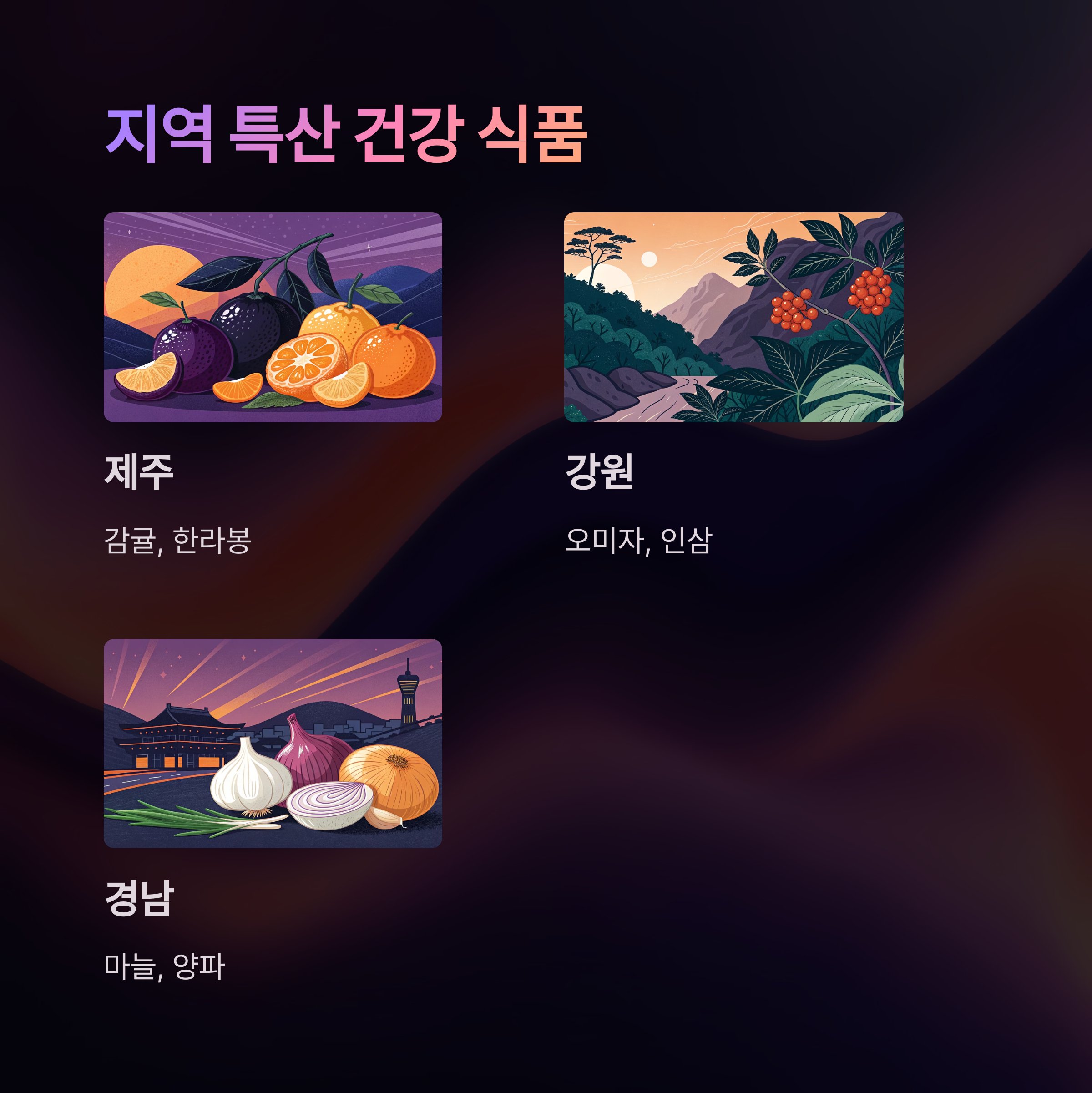 지역 특산 건강 식품으로 건강과 식탁을 동시에 챙기세요