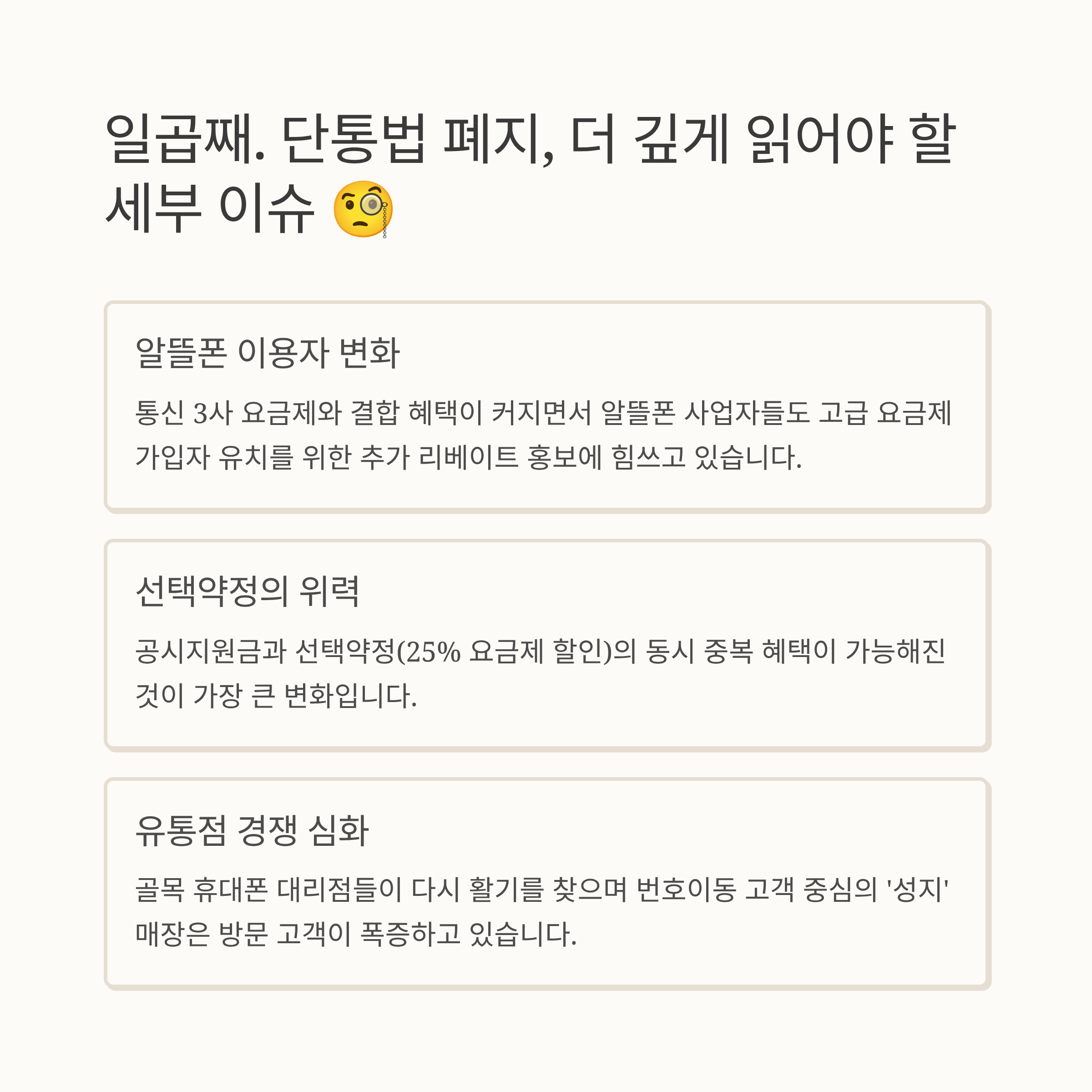 일곱째. 단통법 폐지, 더 깊게 읽어야 할 세부 이슈와 전략 🧐
