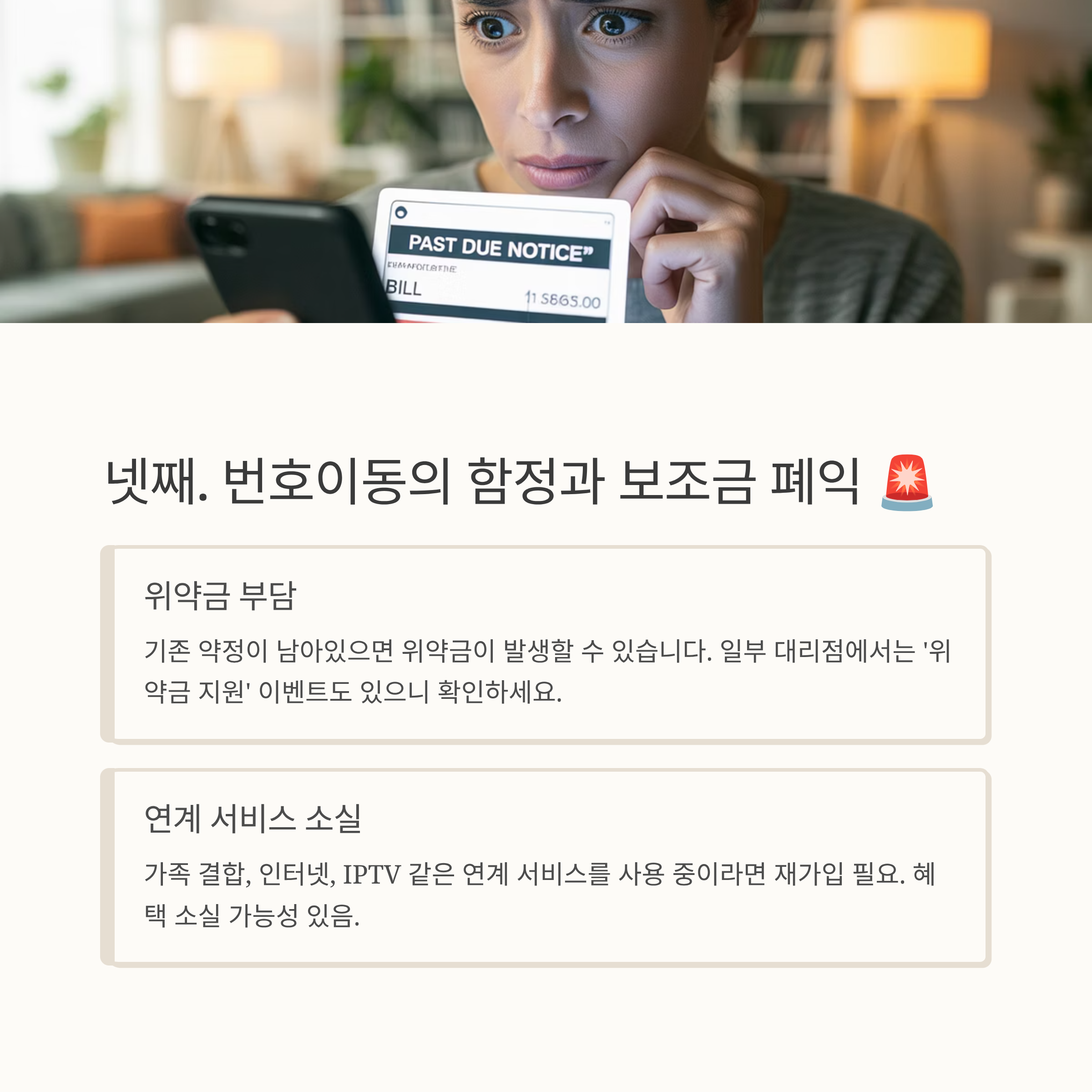 - 위약금·서비스 재가입 등 초기 부담이 있다면: 반드시 기존 약정 위약금 산정액, 멤버십·결합 서비스 연동 해지 조건, 신규 약정 조건(최소 3~6개월 사용 등)을 사전에 점검하는 것이 중요해요. 대충 넘어갔다간 나중에 후회할 수도 있어요.