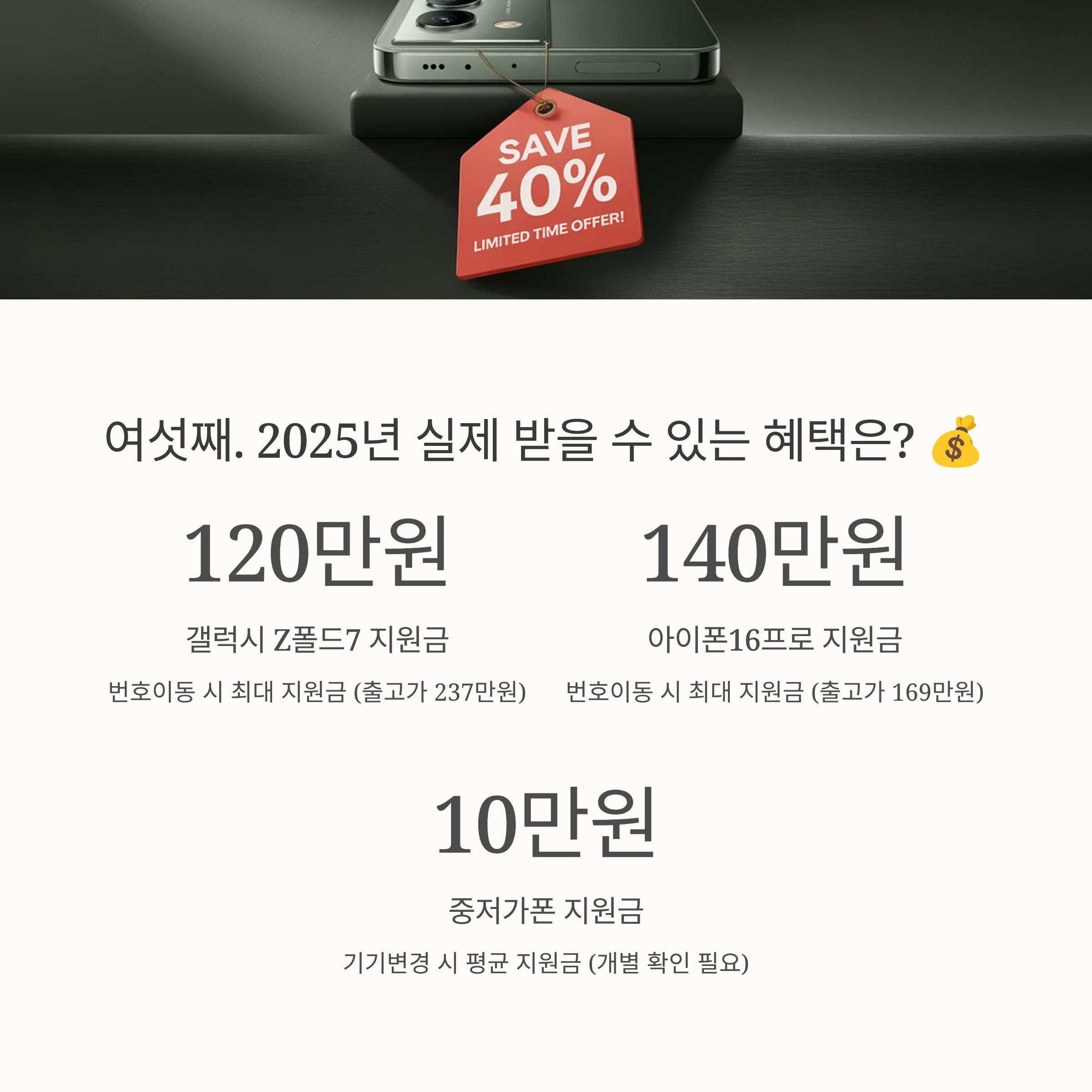 - 갤럭시 Z폴드7, 아이폰16프로 같은 프리미엄 폴더블·플래그십 모델은 번호이동 시 실질 구매가가 출고가의 40~70% 수준으로 급락하는 파격 사례가 잇따르고 있답니다.