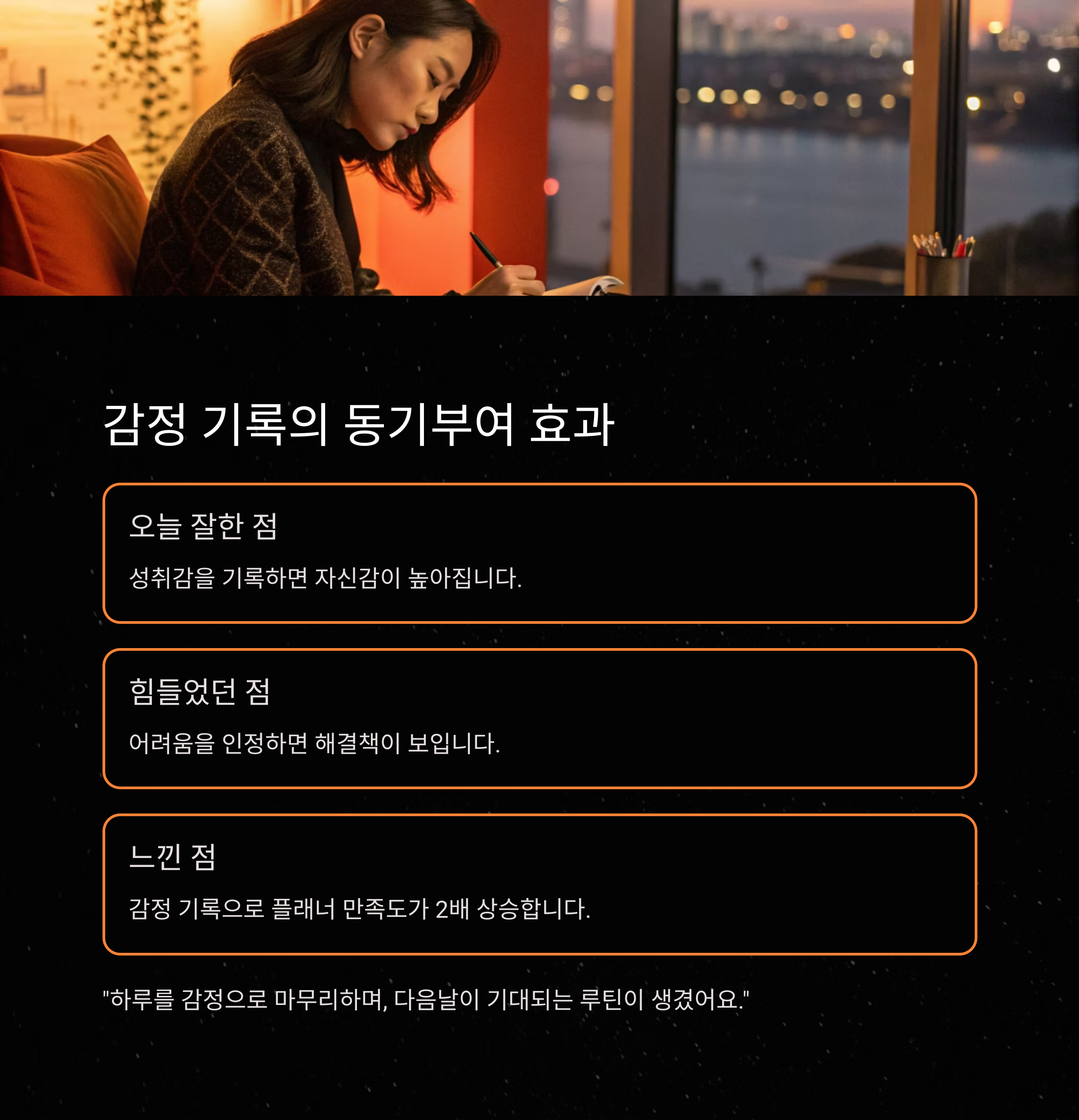 "하루를 감정으로 마무리하며, 다음날이 기대되는 루틴이 생겼어요"