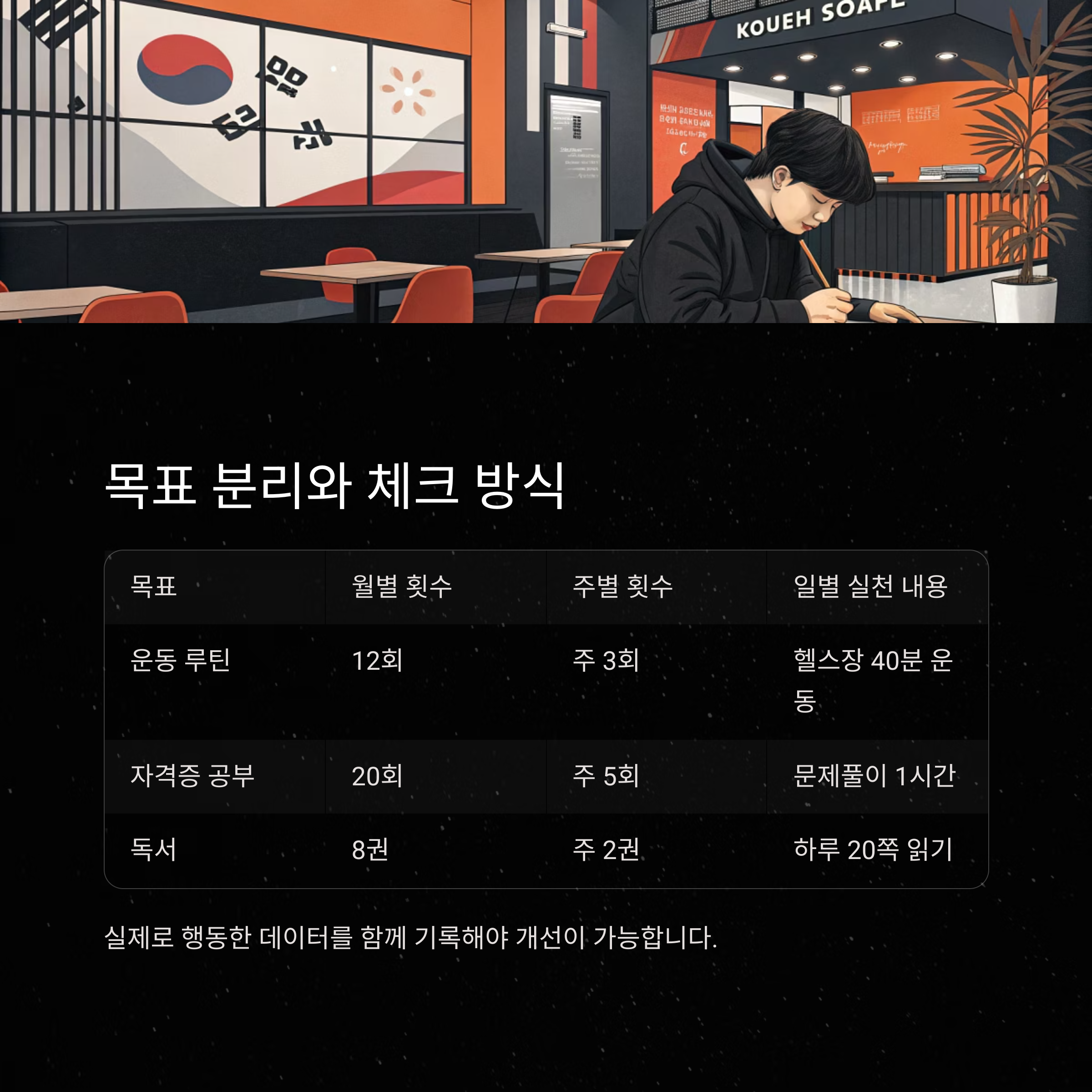 이 과정을 반복할수록 실행력 있는 계획과 실현 가능한 목표 설정이 가능해집니다