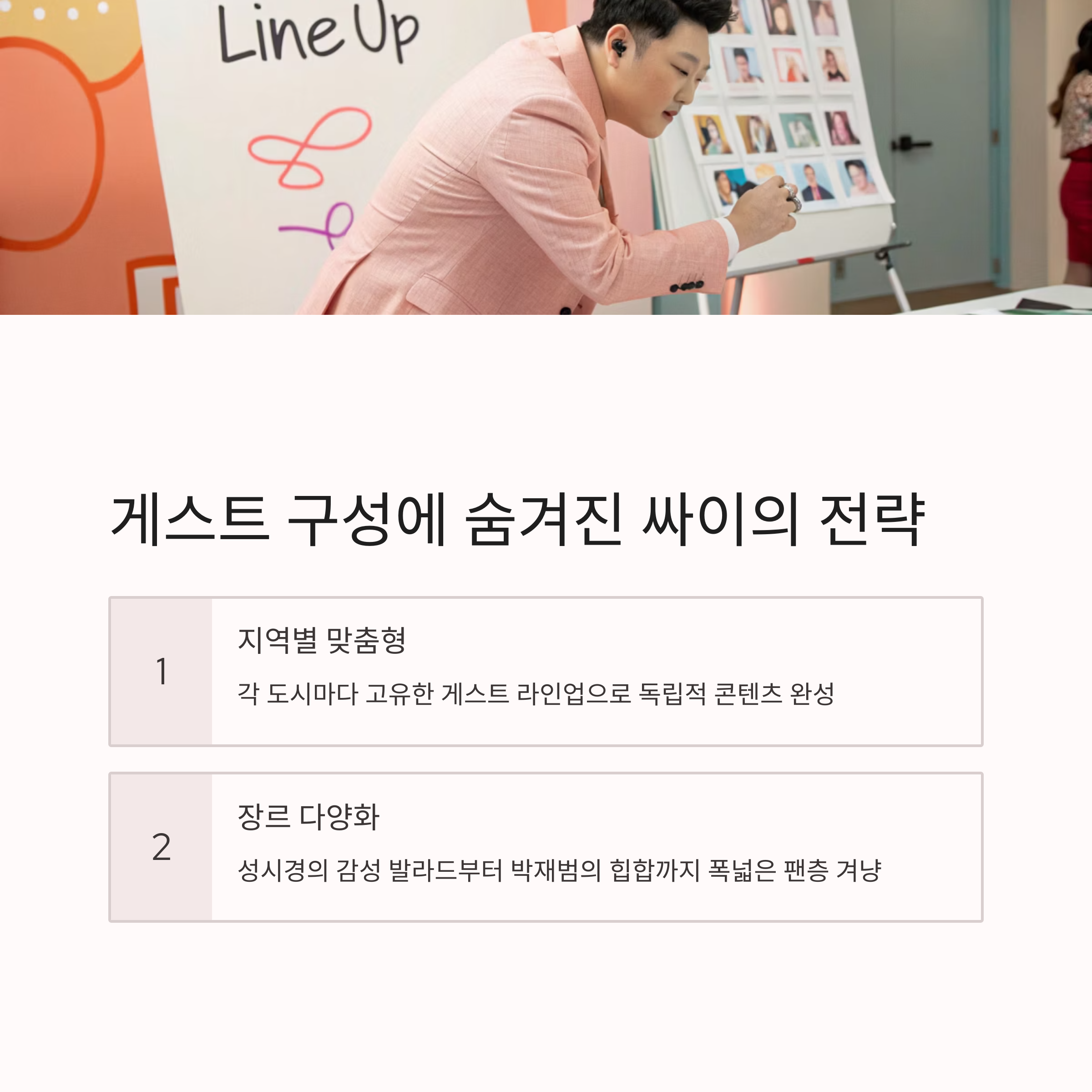 이처럼 싸이는 지역, 타깃, 콘셉트에 맞춘 섬세한 게스트 기획을