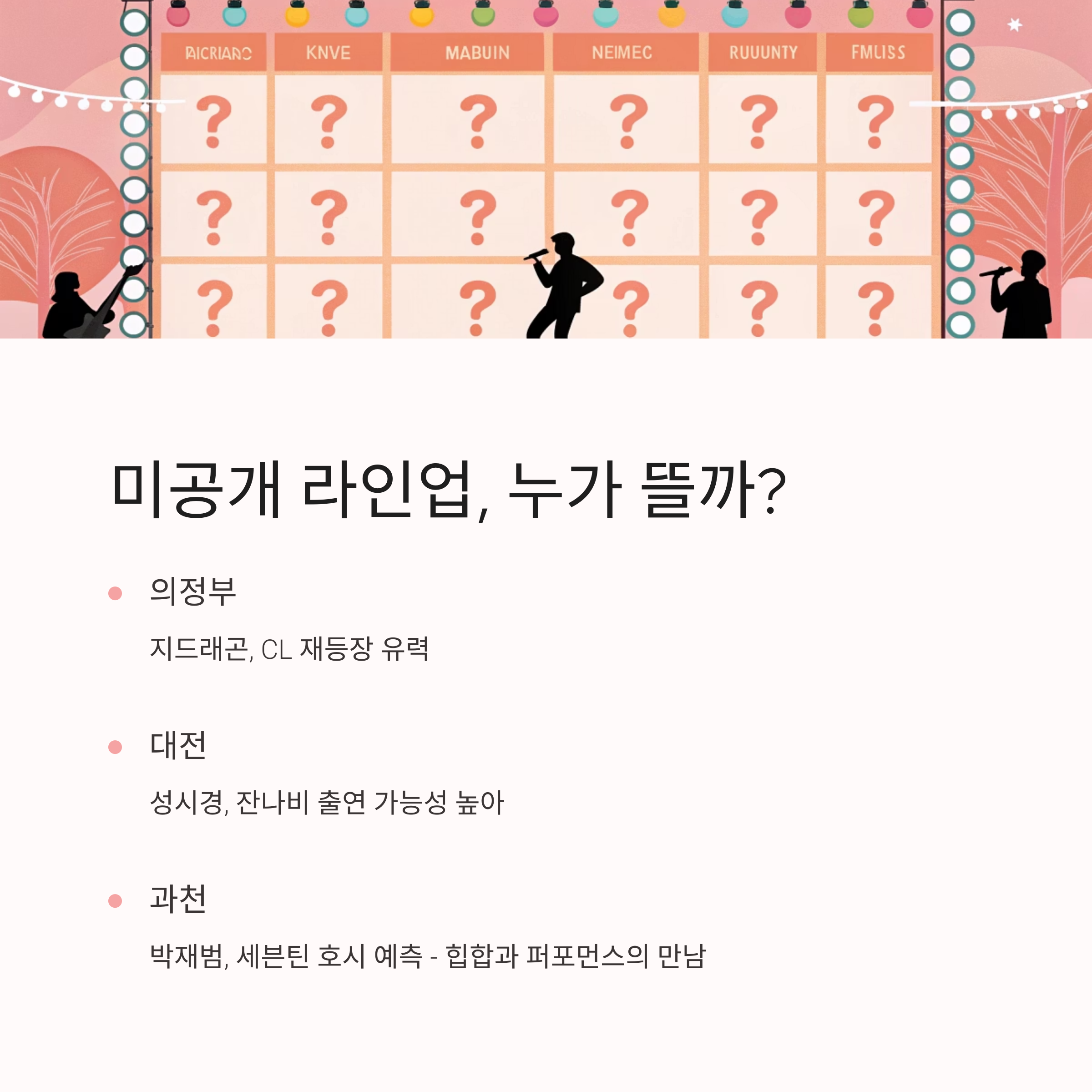 의정부, 대전, 과천…아직 공개되지 않은 라인업, 누가 뜰까?