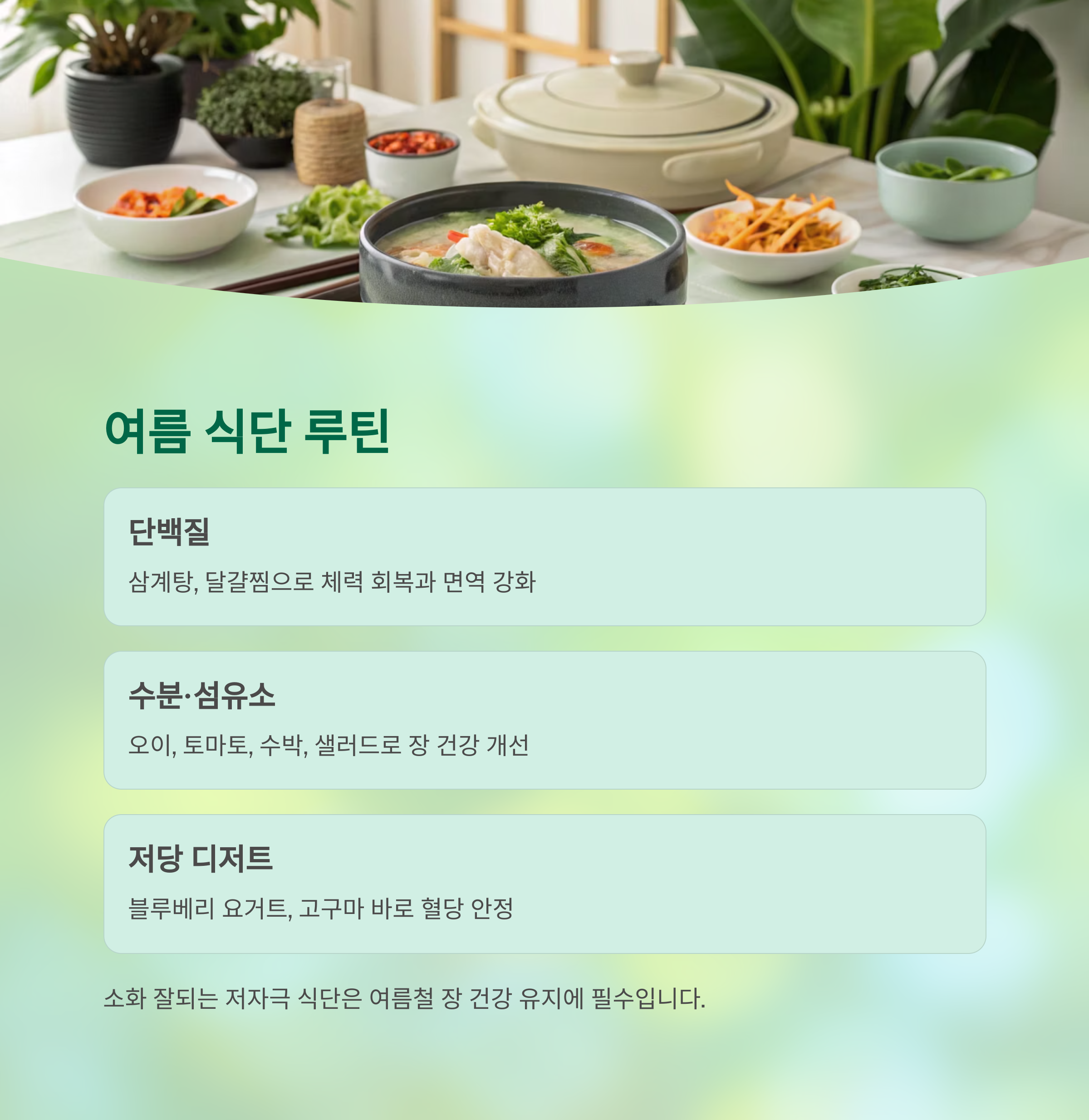 여름철 식단은 위장 부담을 줄이고, 체력을 보강하는 식사가 중요합니다.