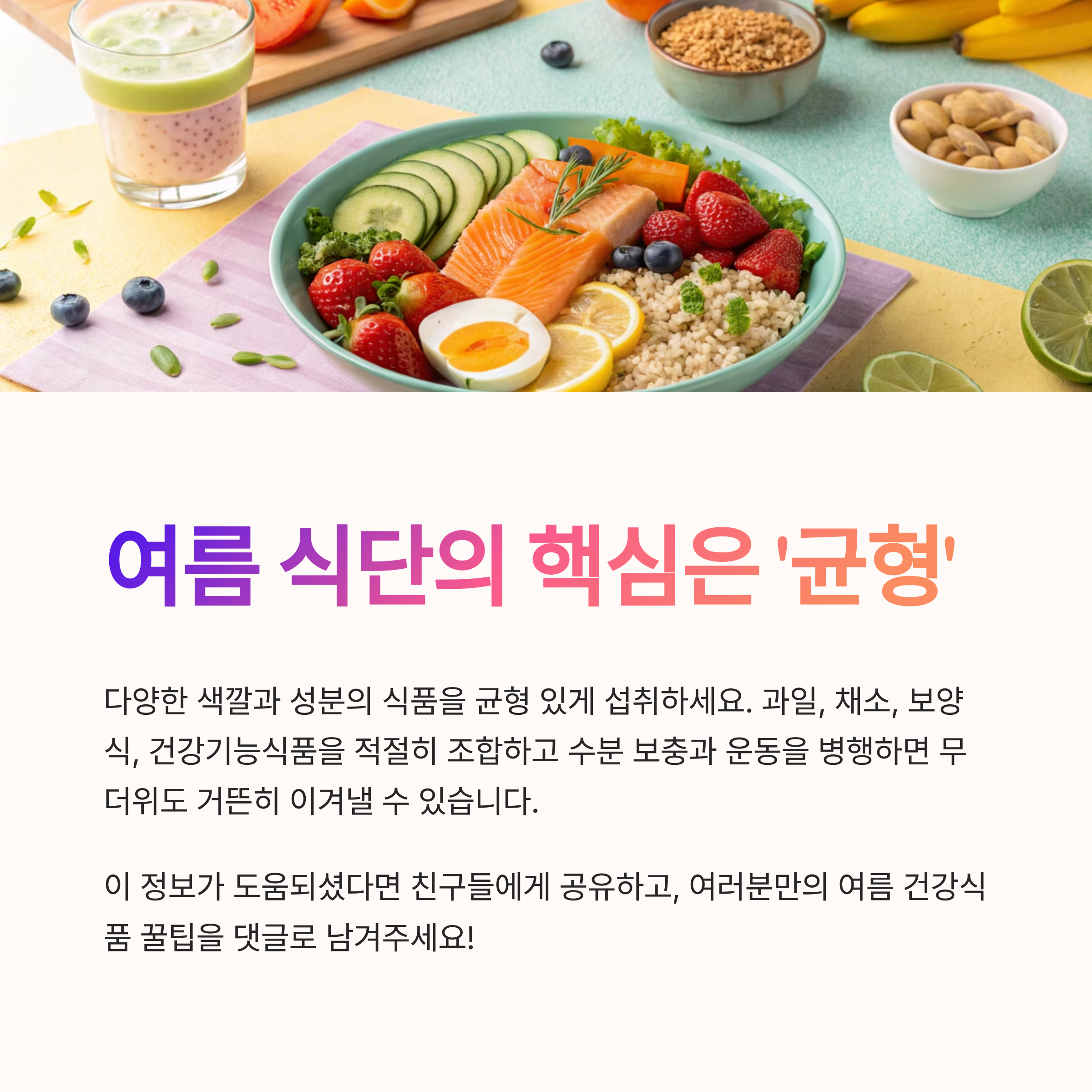 무더운 여름, 다양한 색깔과 성분을 가진 식품을 균형 있게 섭취하는 것이