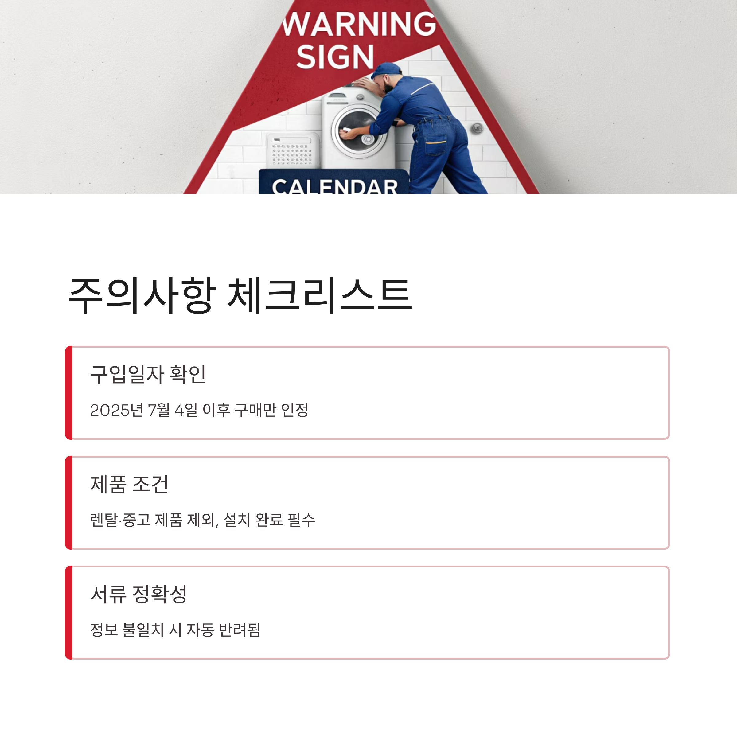 둘째, 렌탈·중고 제품은 제외이며, 설치 완료 전 신청은 무효입니다.