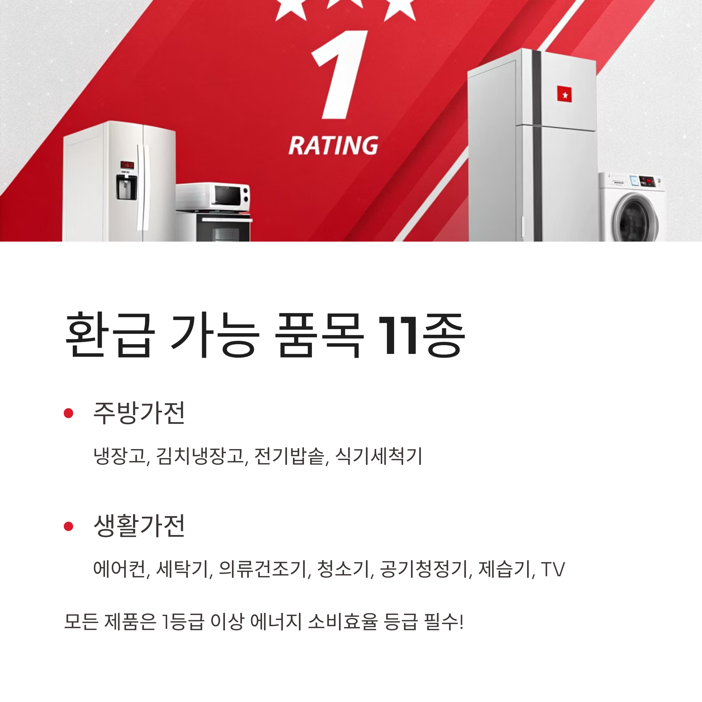 지원 품목은 다음과 같으며, 모두 1등급 이상의 에너지 소비효율 등급을
