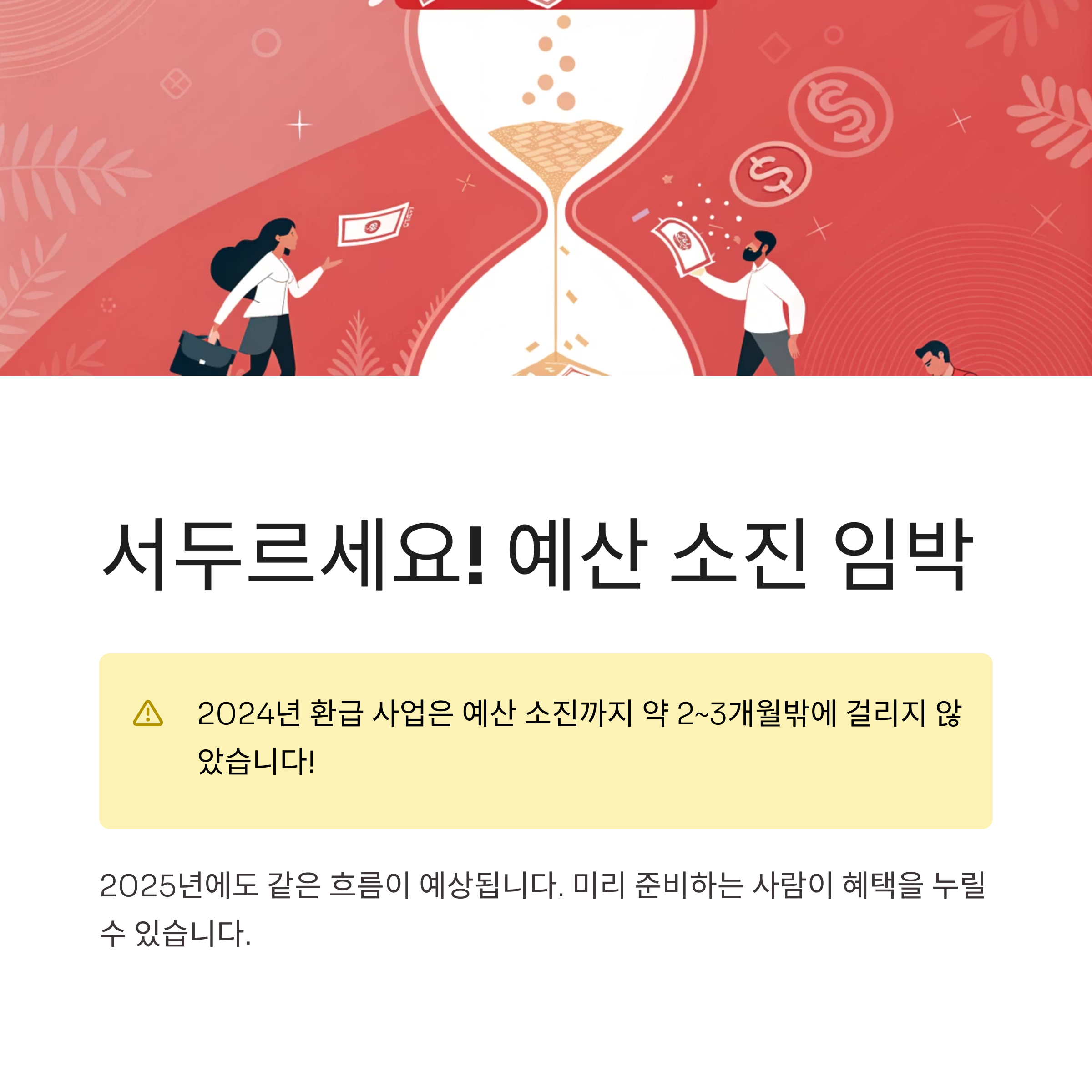 2024년도 환급 사업의 경우 예산 소진까지 약 2~3개월밖에 걸리지 않았습니다.
