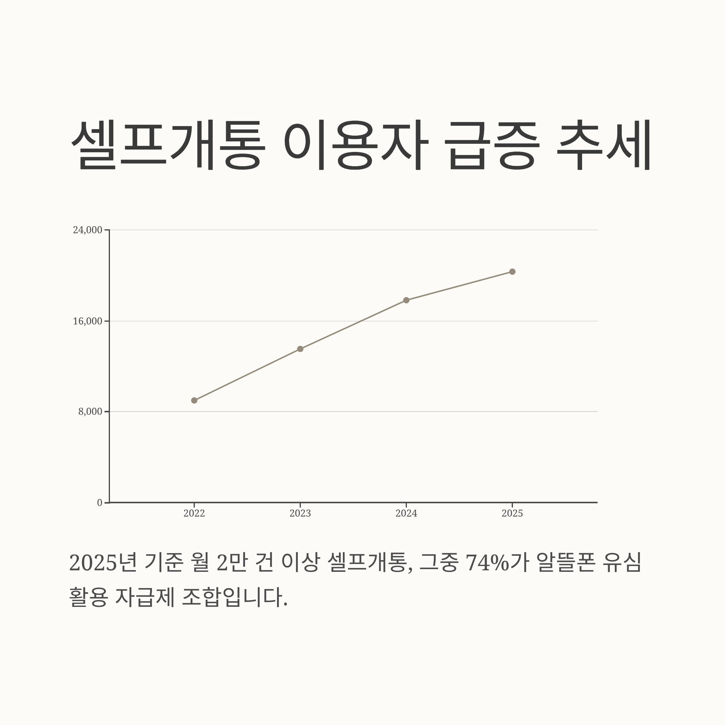 2025년 기준, 한 달 평균 2만 건 이상의 셀프개통이 진행되고 있으며