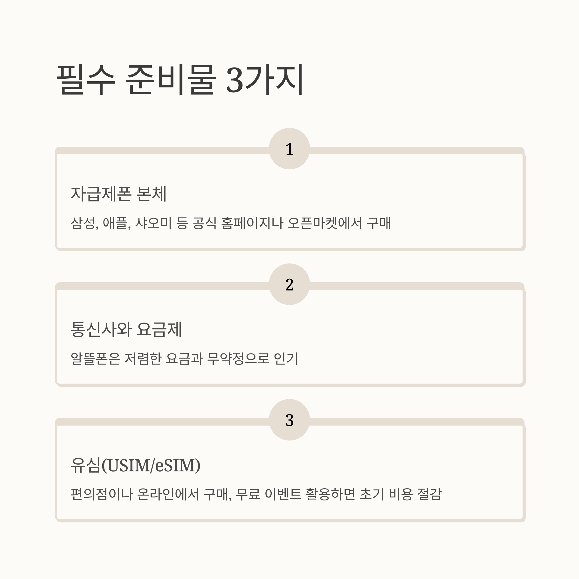 자급제폰과 알뜰폰 유심 조합은 2025년에도 여전히 통신비 절약의 정답으로 자리잡고 있습니다. 요금제 선택부터 유심 장착, 셀프개통까지 모든 과정을 누구나 따라 할 수 있도록 정리했습니다. 이 글 하나면 헷갈리던 자급제폰 개통도 단숨에 끝낼 수 있습니다.